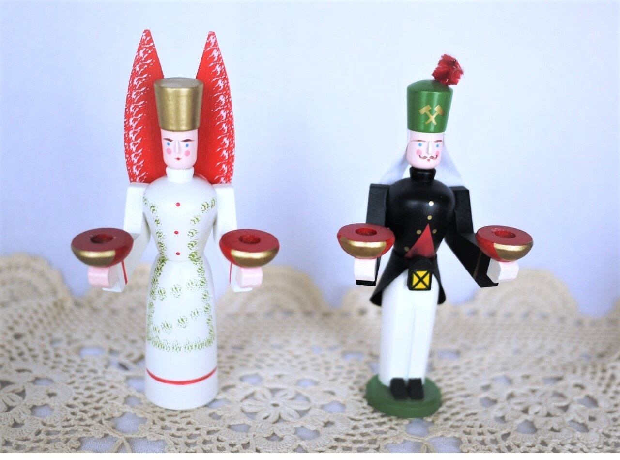 ドイツ エルツ人形 天使&鉱夫 燭台人形 ザイフェン