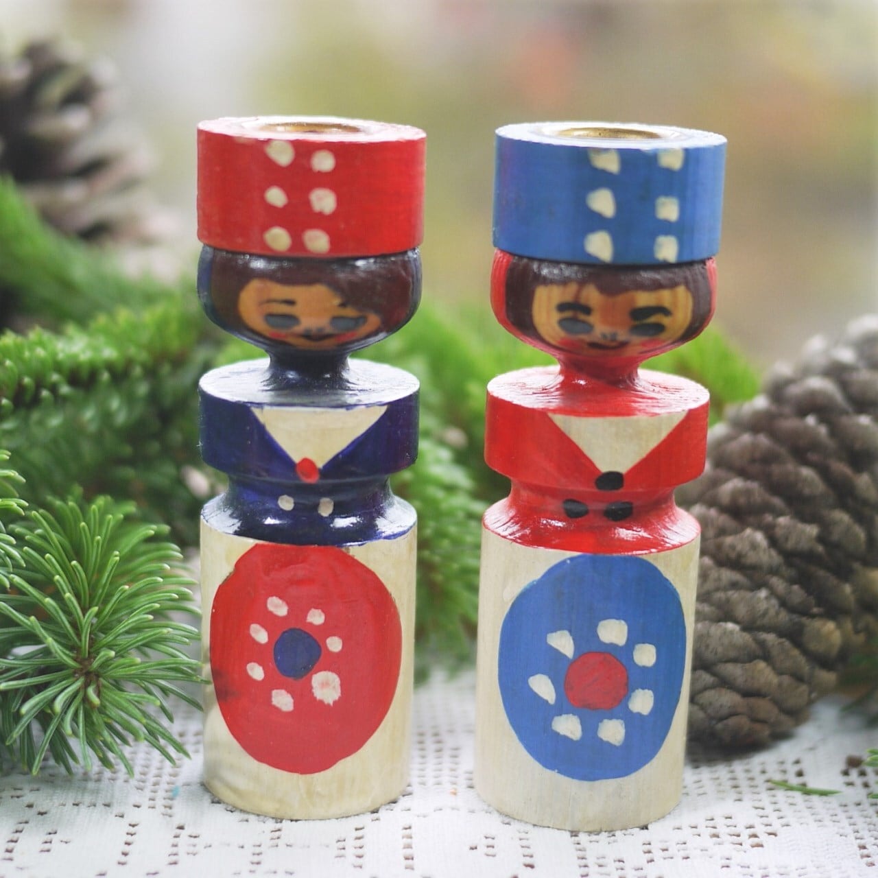 [木製キャンドルホルダーペア 民族衣装 東欧ドイツ]