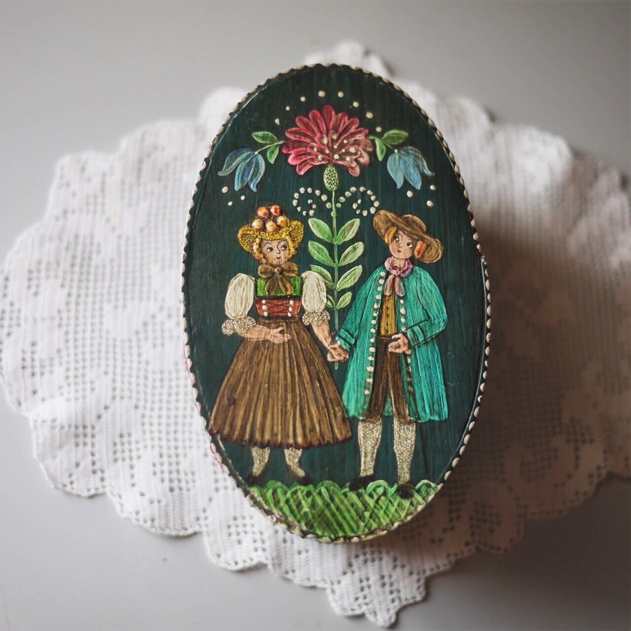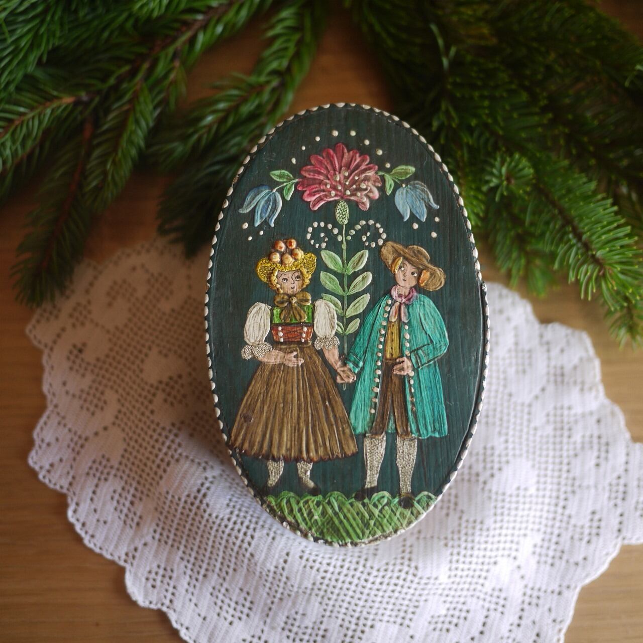ハンドペイントで描かれたフォークロアな絵柄。