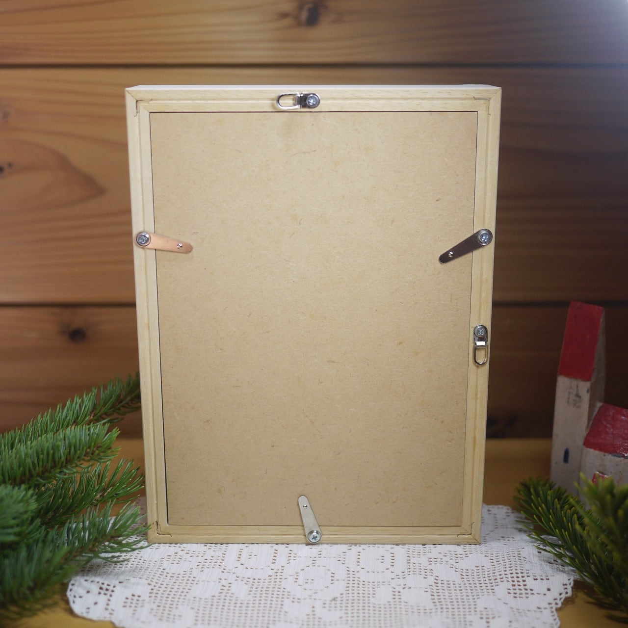 額は木製、前面はガラスです。