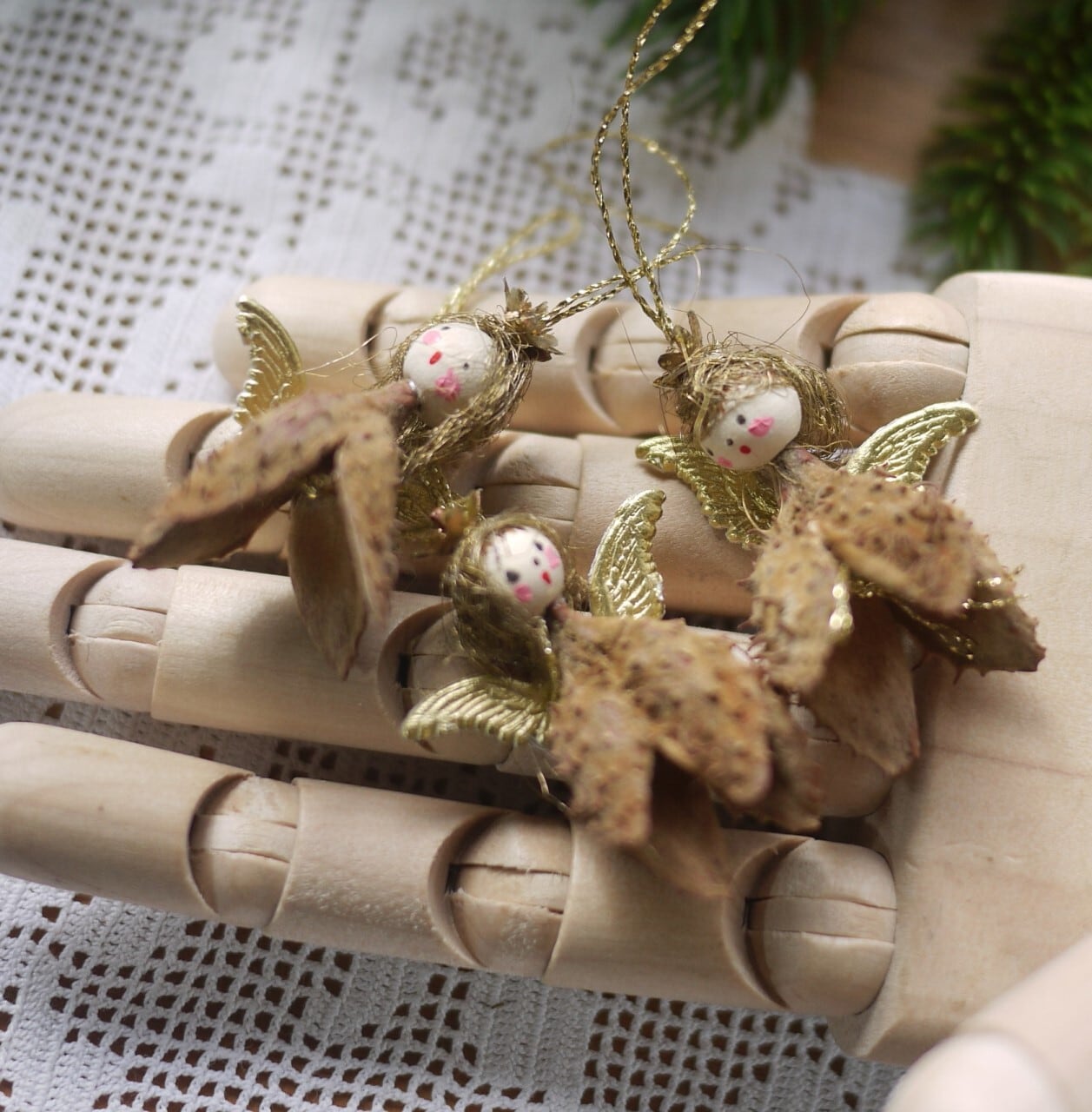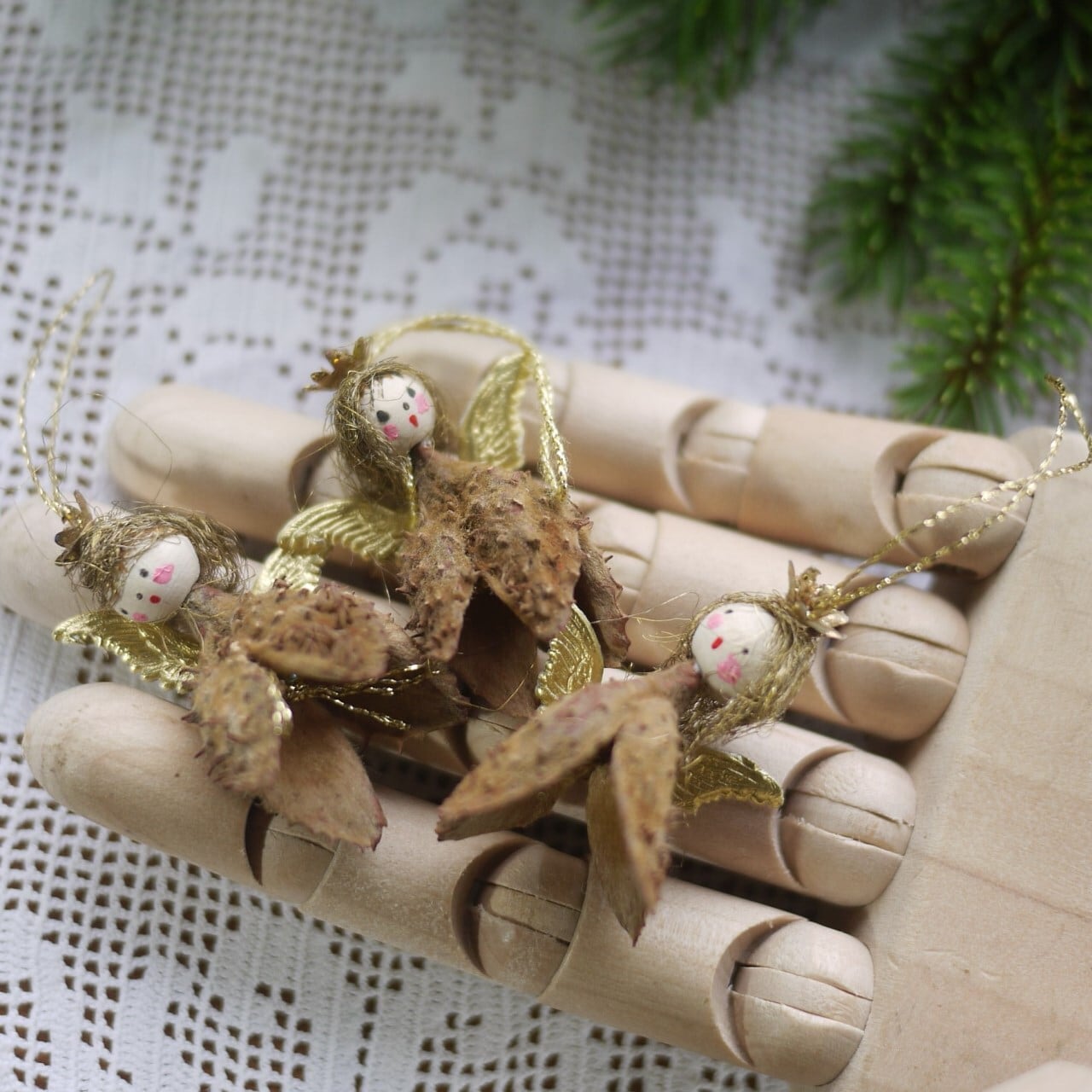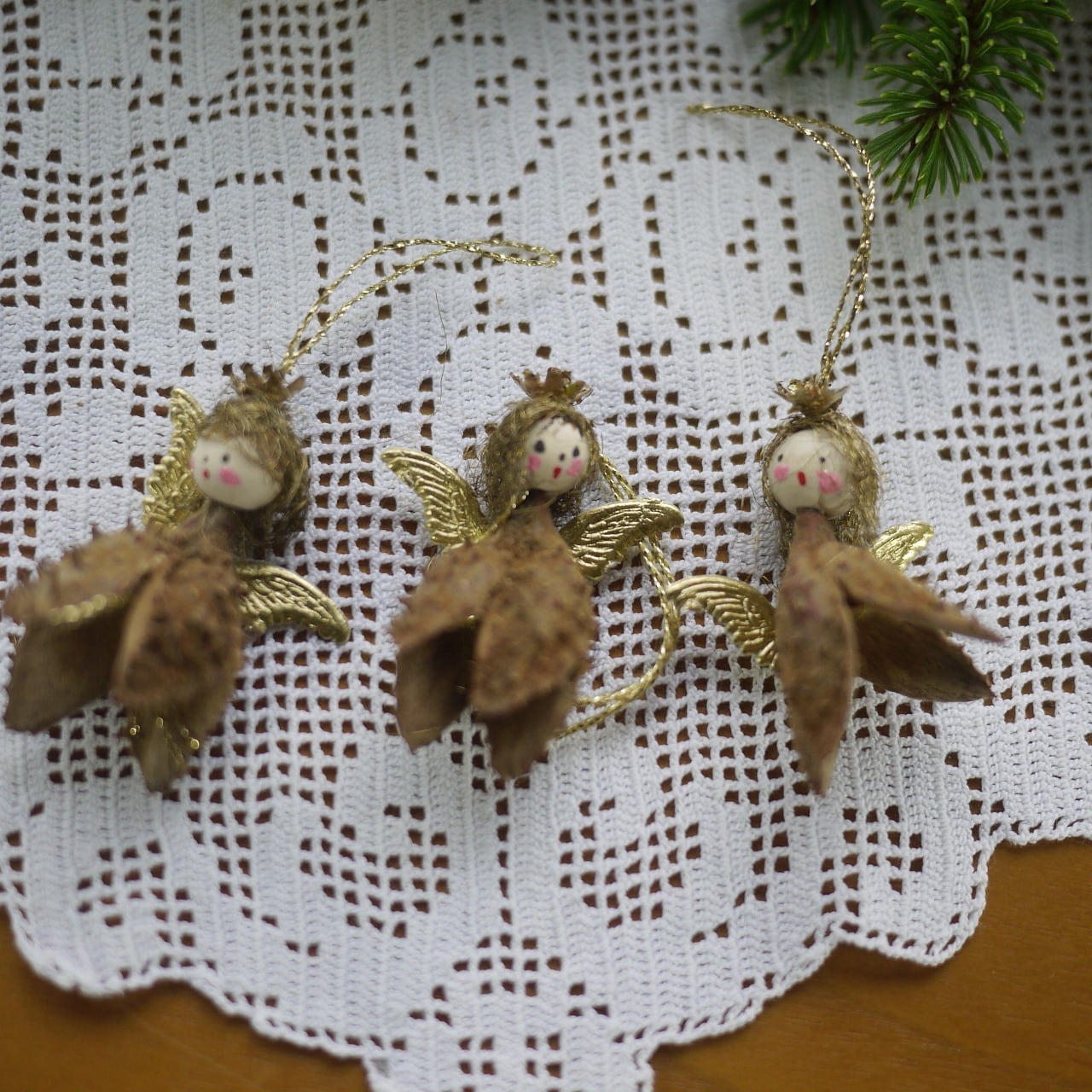 木の実オーナメント ブナの天使3人 bucheckern hülsen
