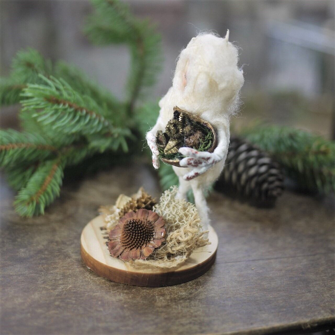 栗の鬼皮をカゴにして、木ノ実をいっぱいに詰めています。