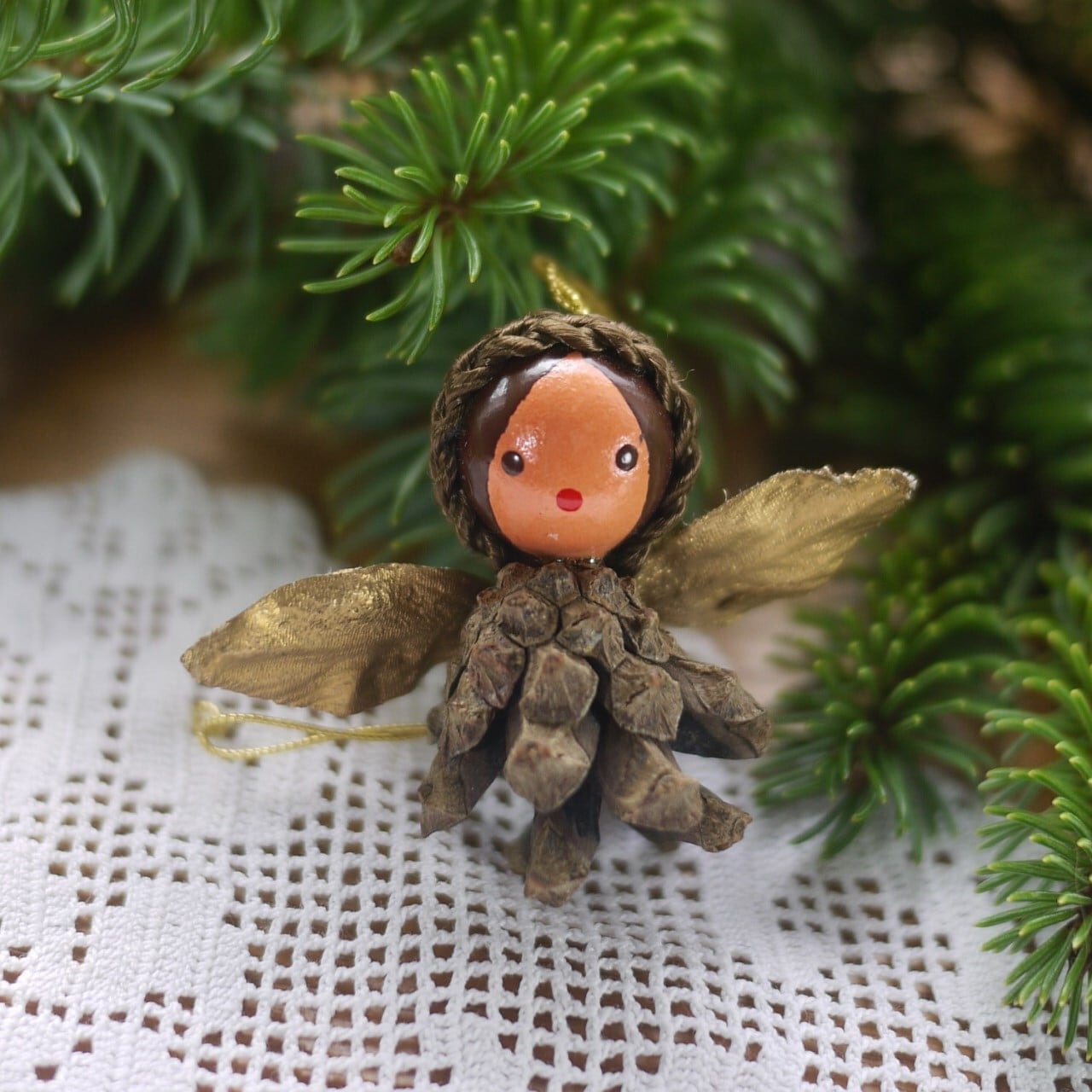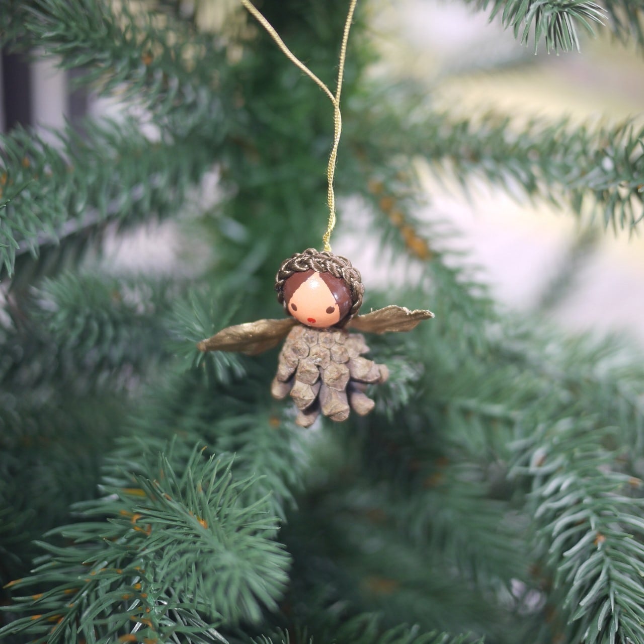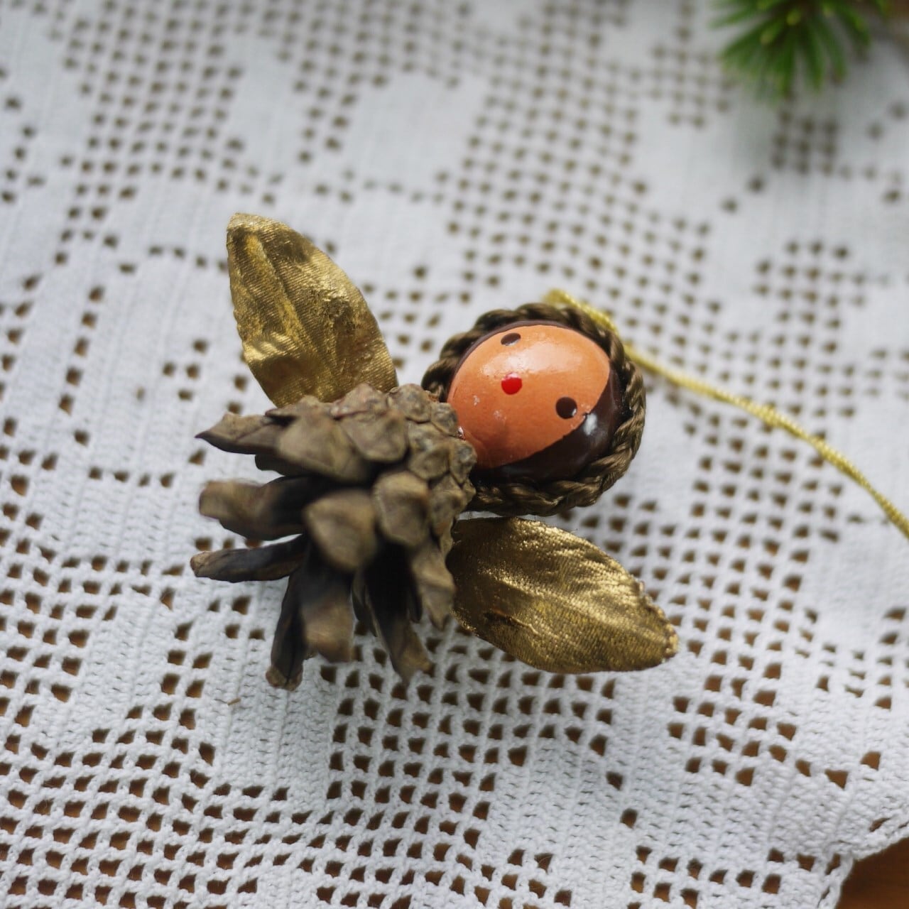 松ぼっくりを使ったクリスマスツリーオーナメント。