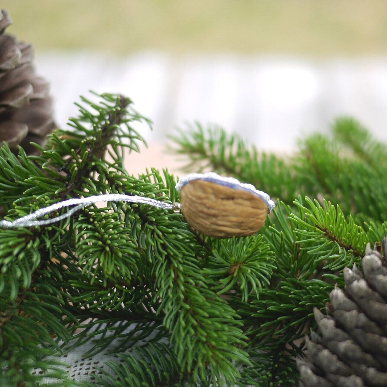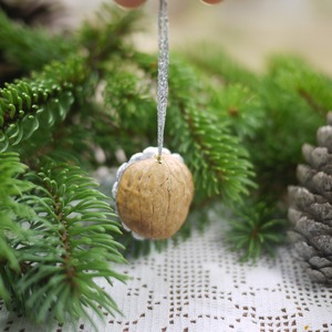 公園のクルミの実を集めてオーナメントをつくりました。