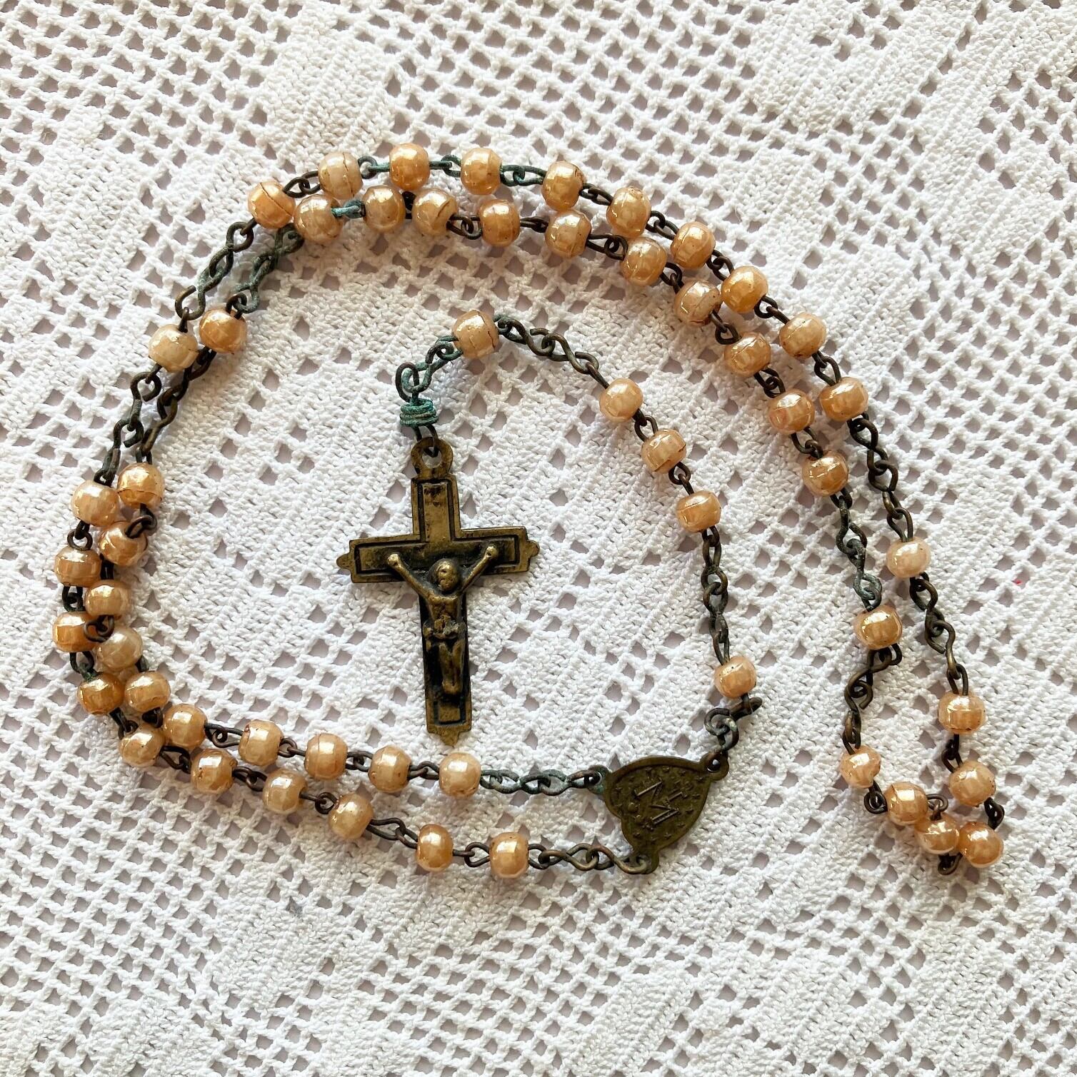 [小さなロザリオ オレンジ硝子 フランス]