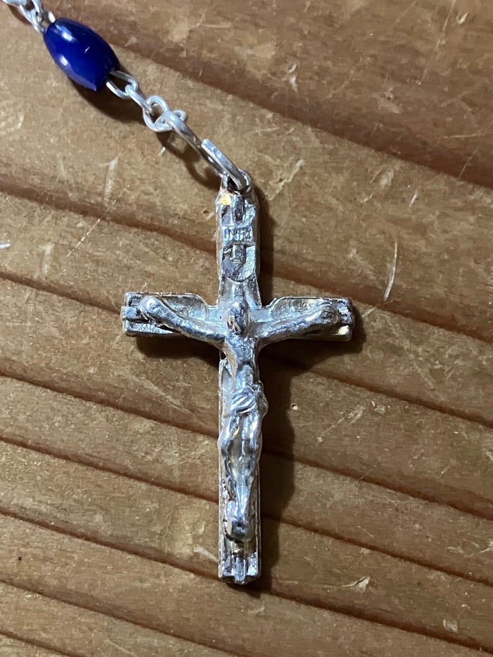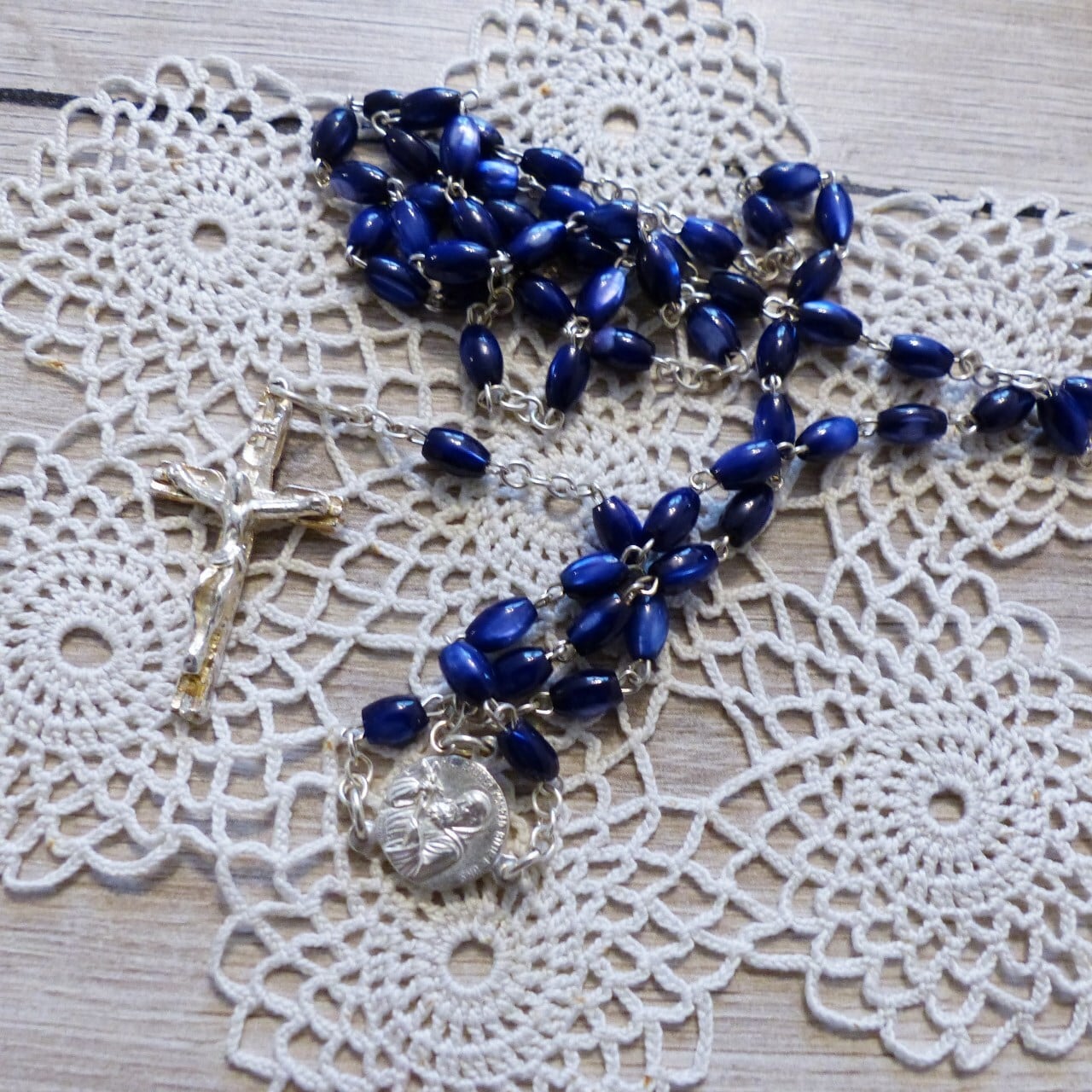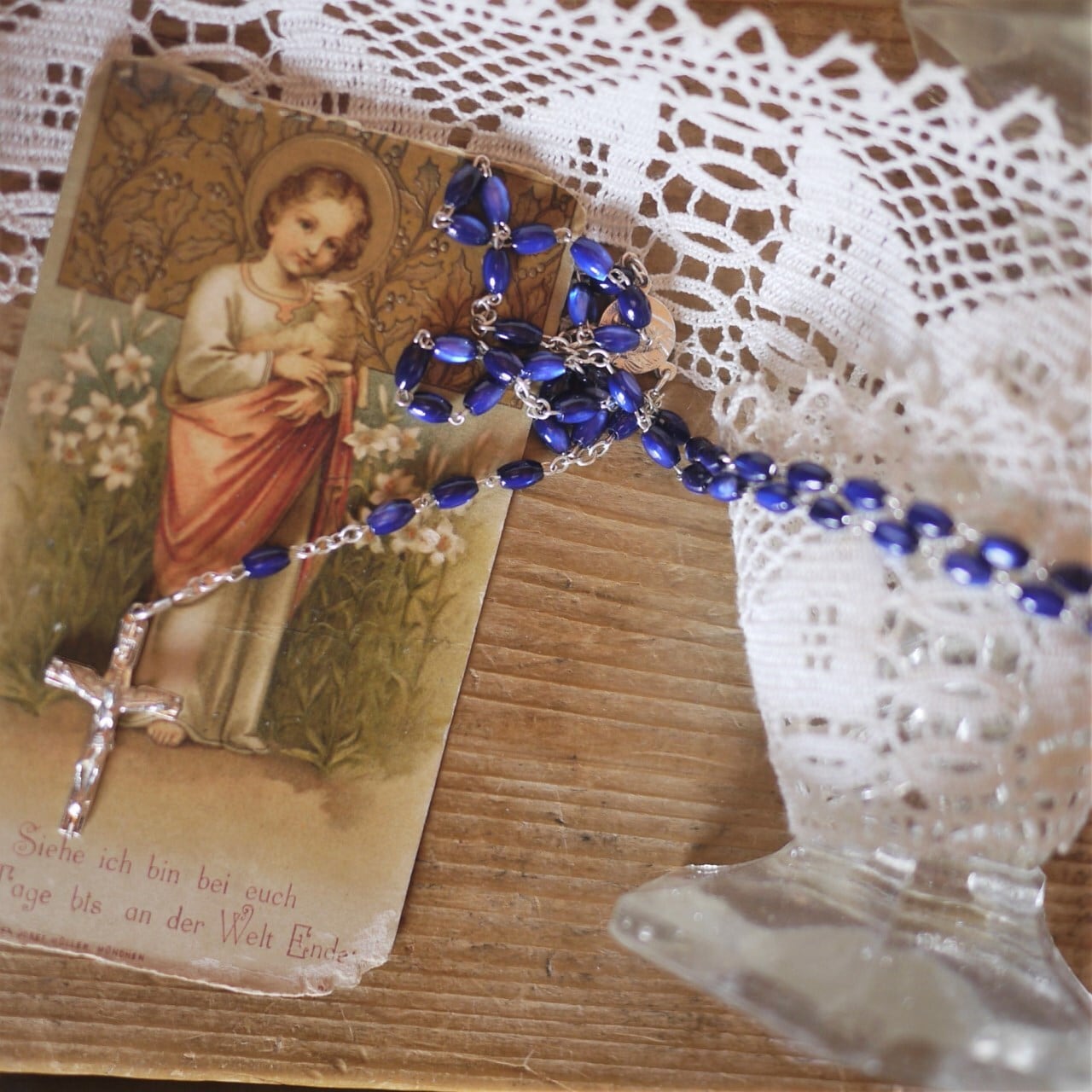 ドイツで見つけた、美しい青いガラスビーズのロザリオ。