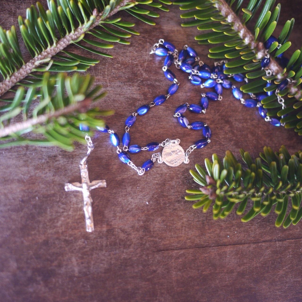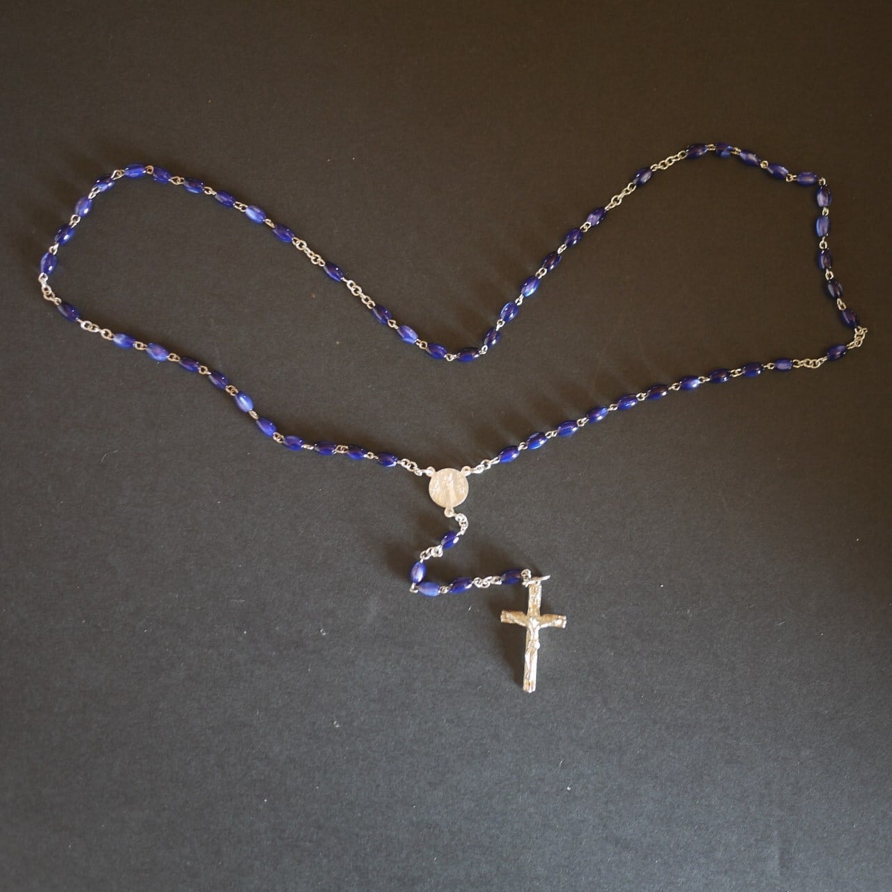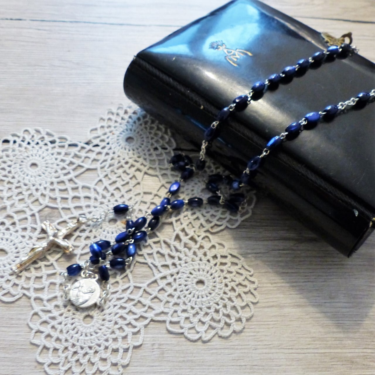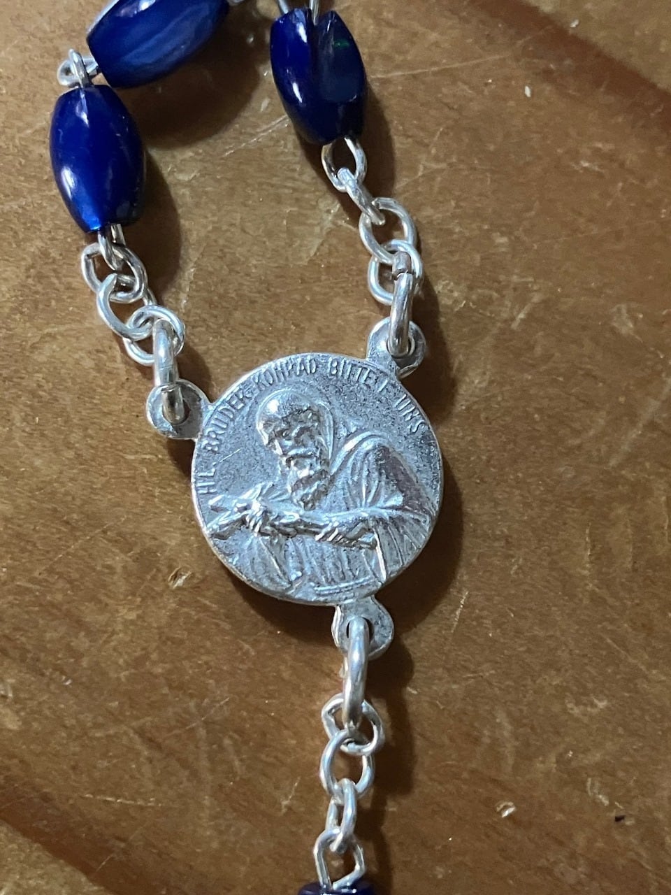 ドイツで見つけた、美しい青いガラスビーズのロザリオ。