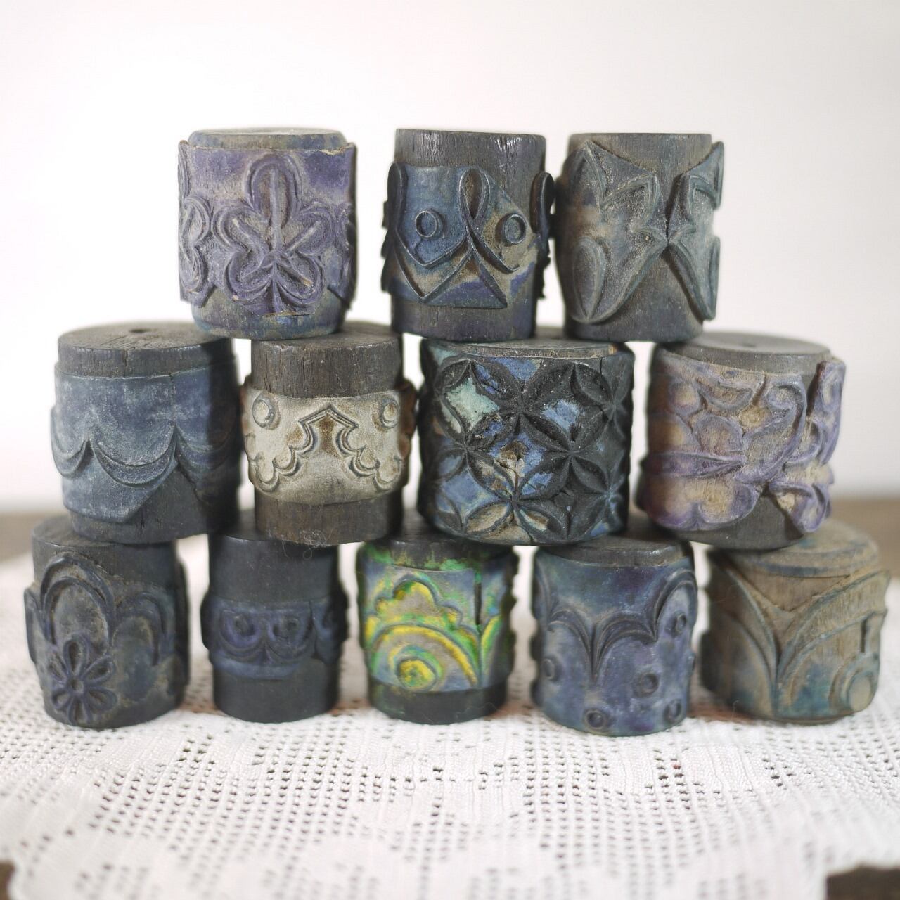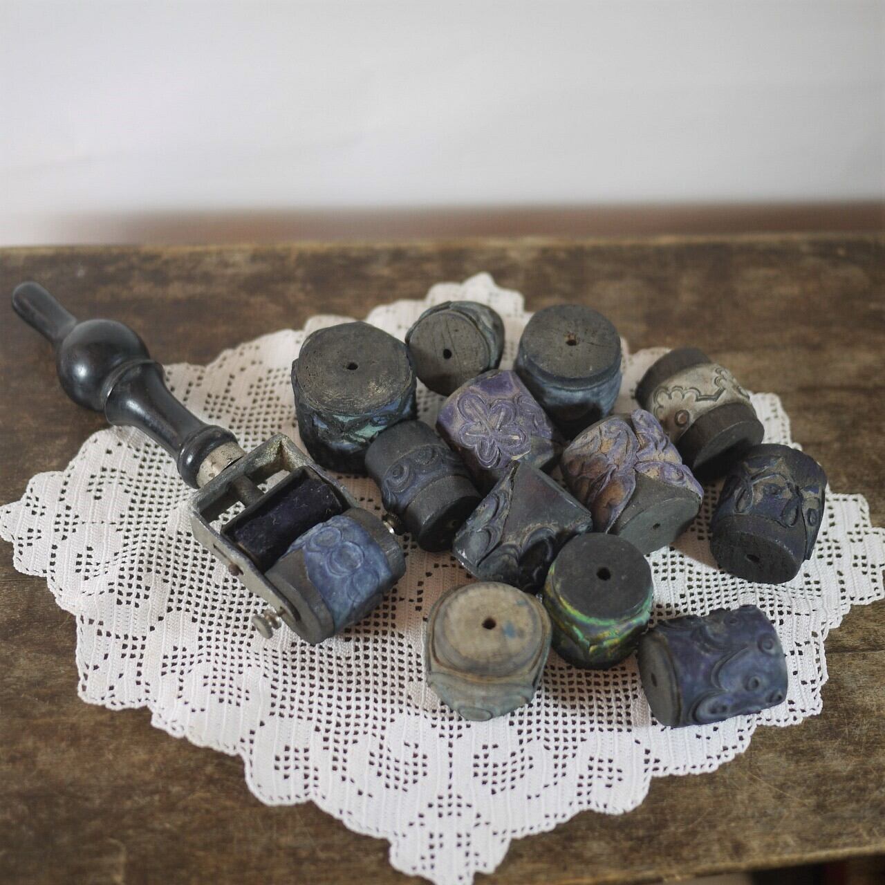 古い刺繍用のローラーとスタンプ(タンポン)のセット。