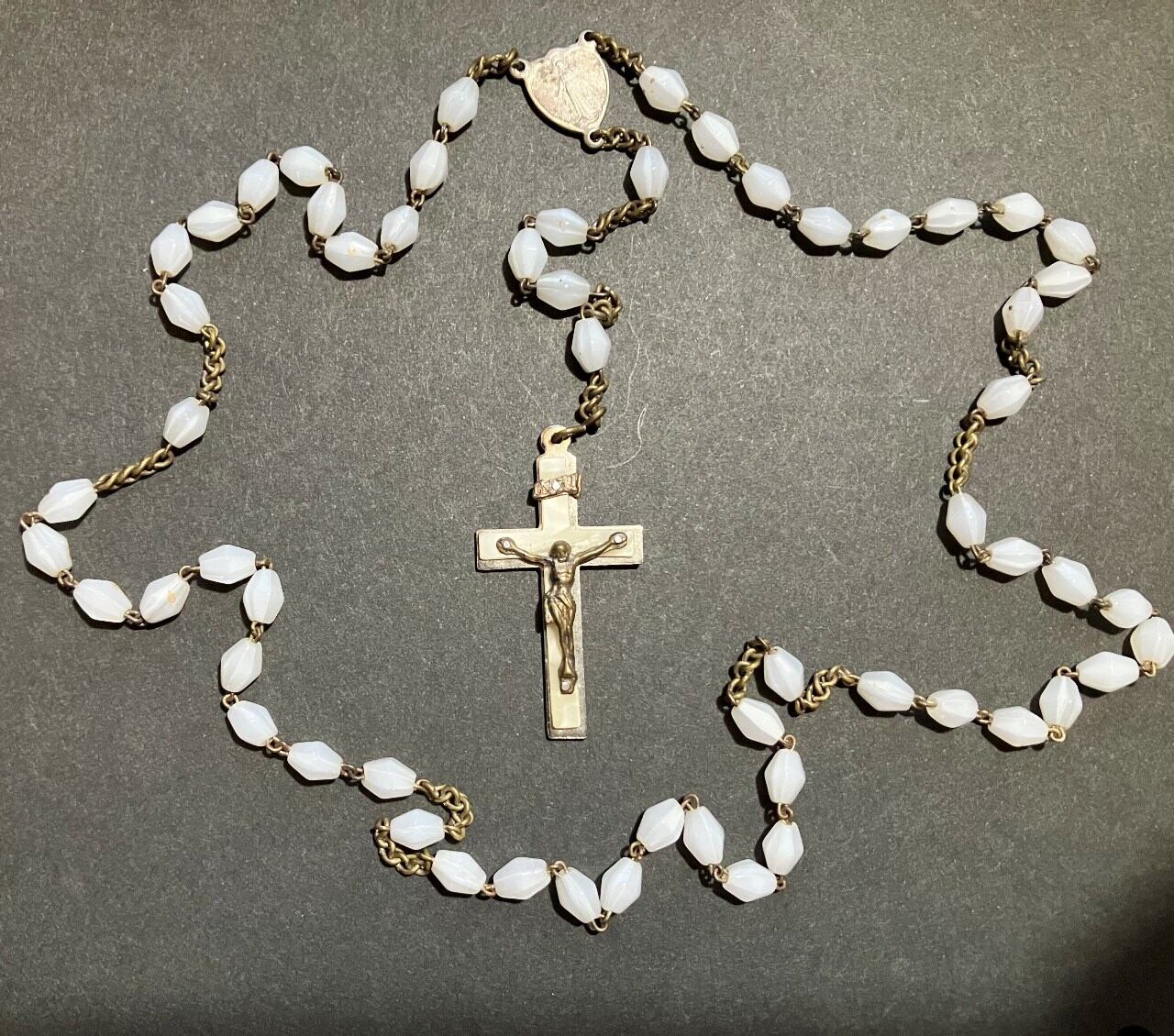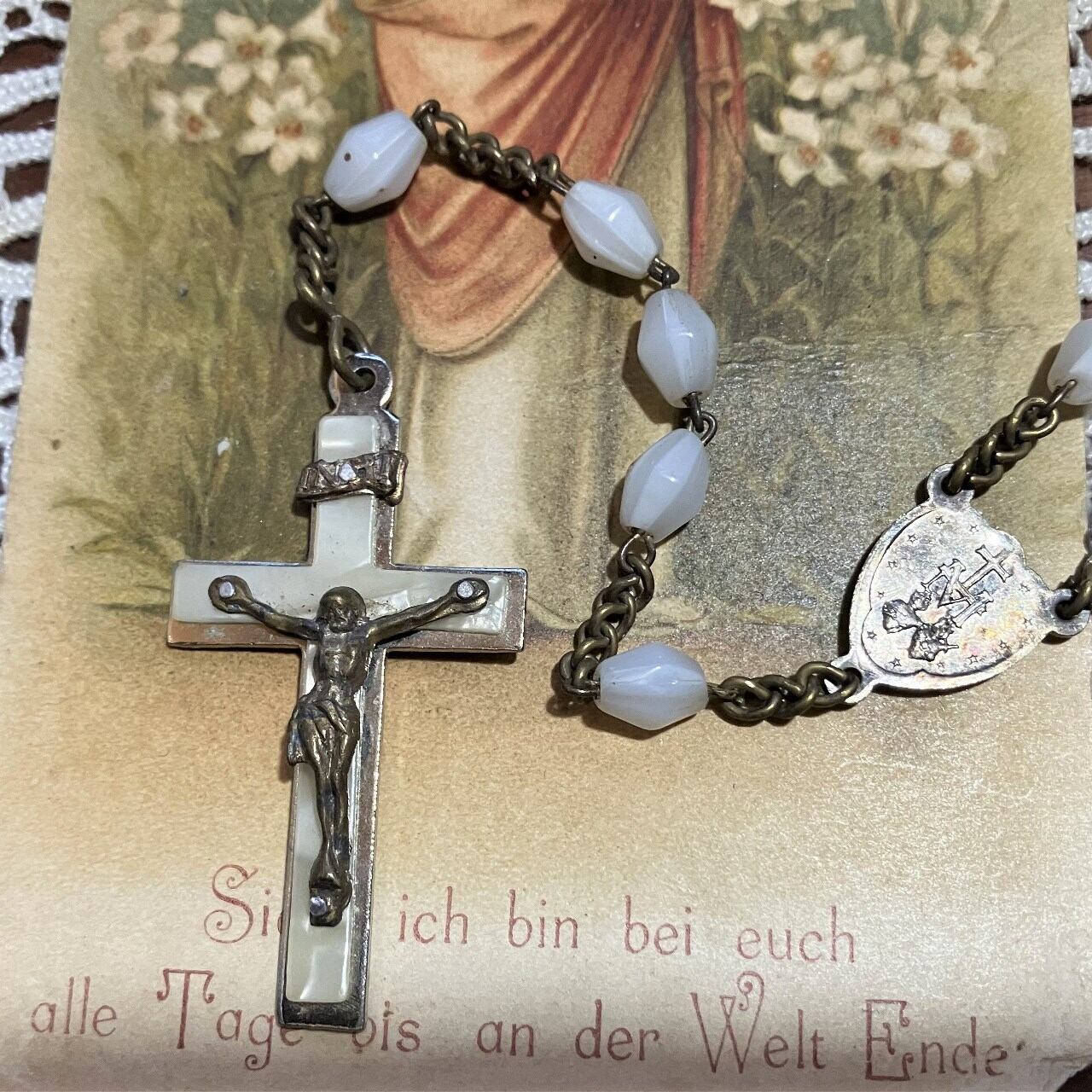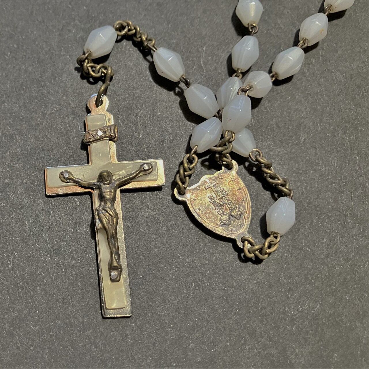 見る面によって微妙に透明度の異なるビーズでつないだロザリオです。