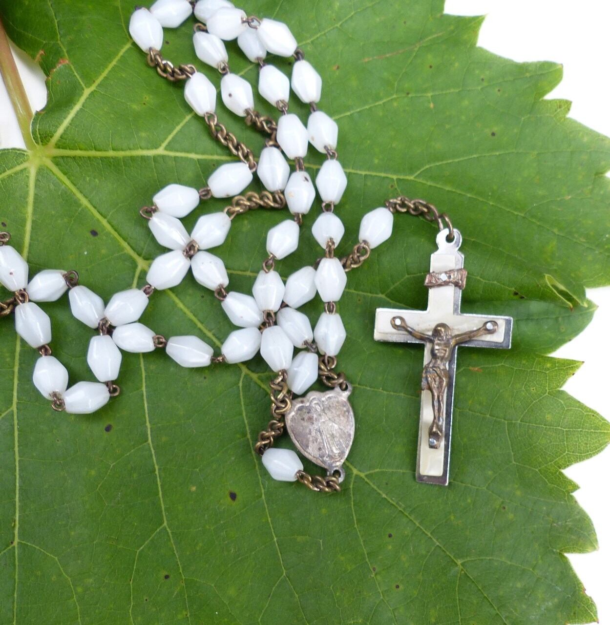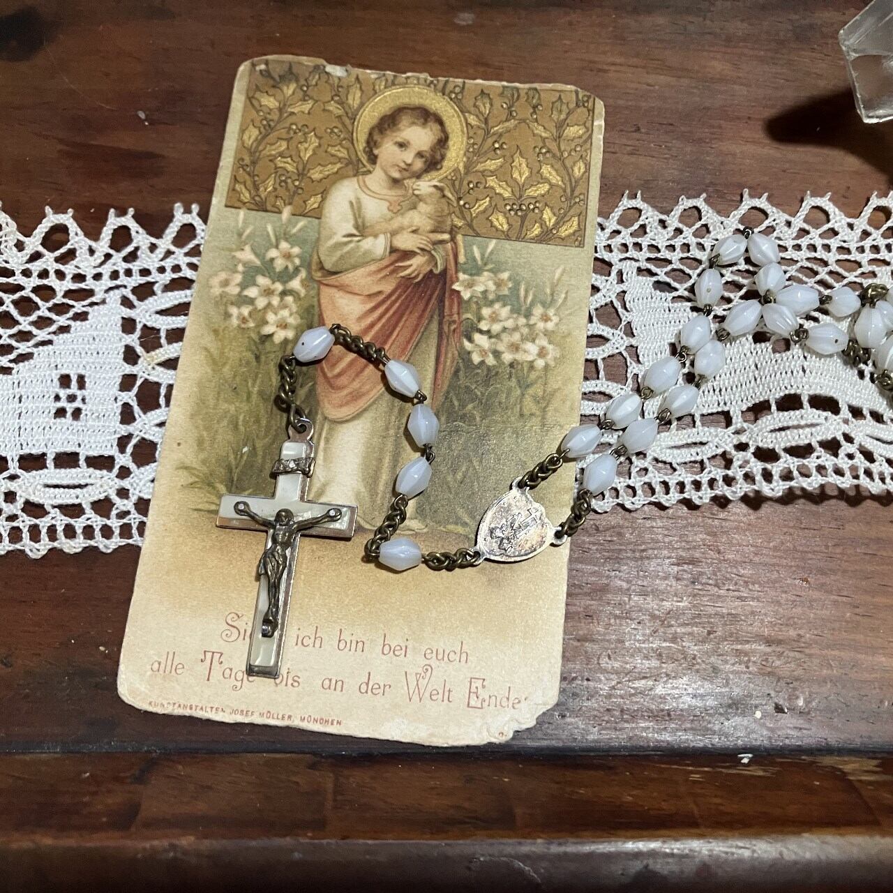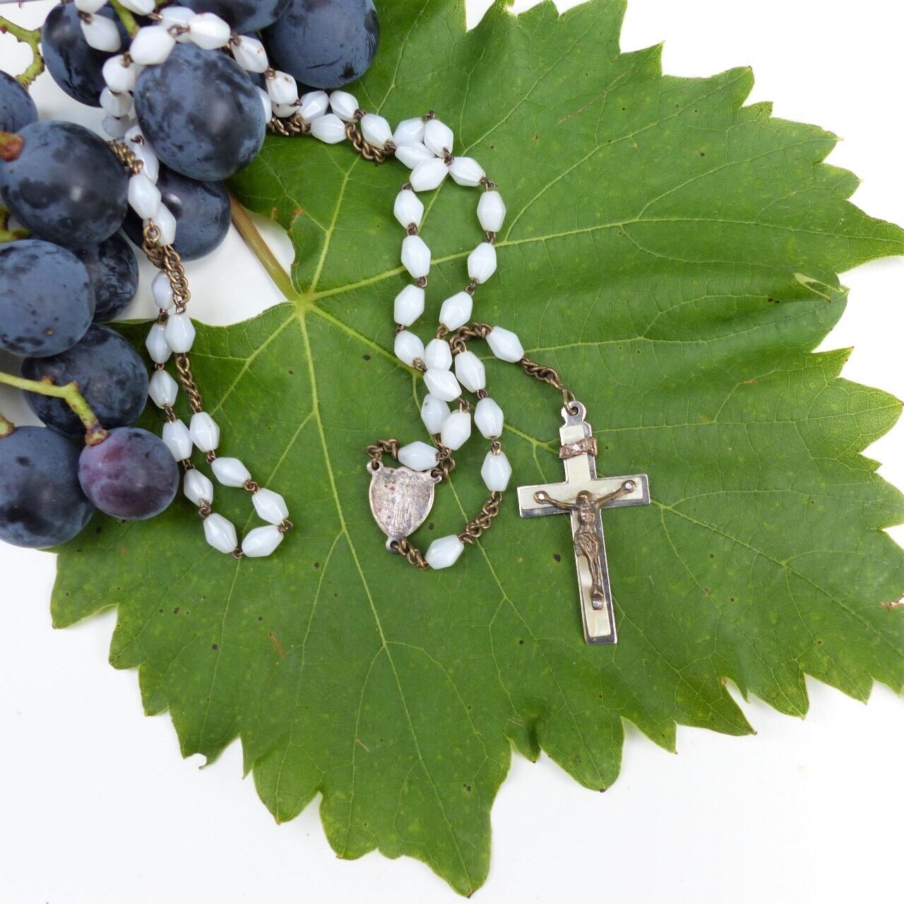見る面によって微妙に透明度の異なるビーズでつないだロザリオです。