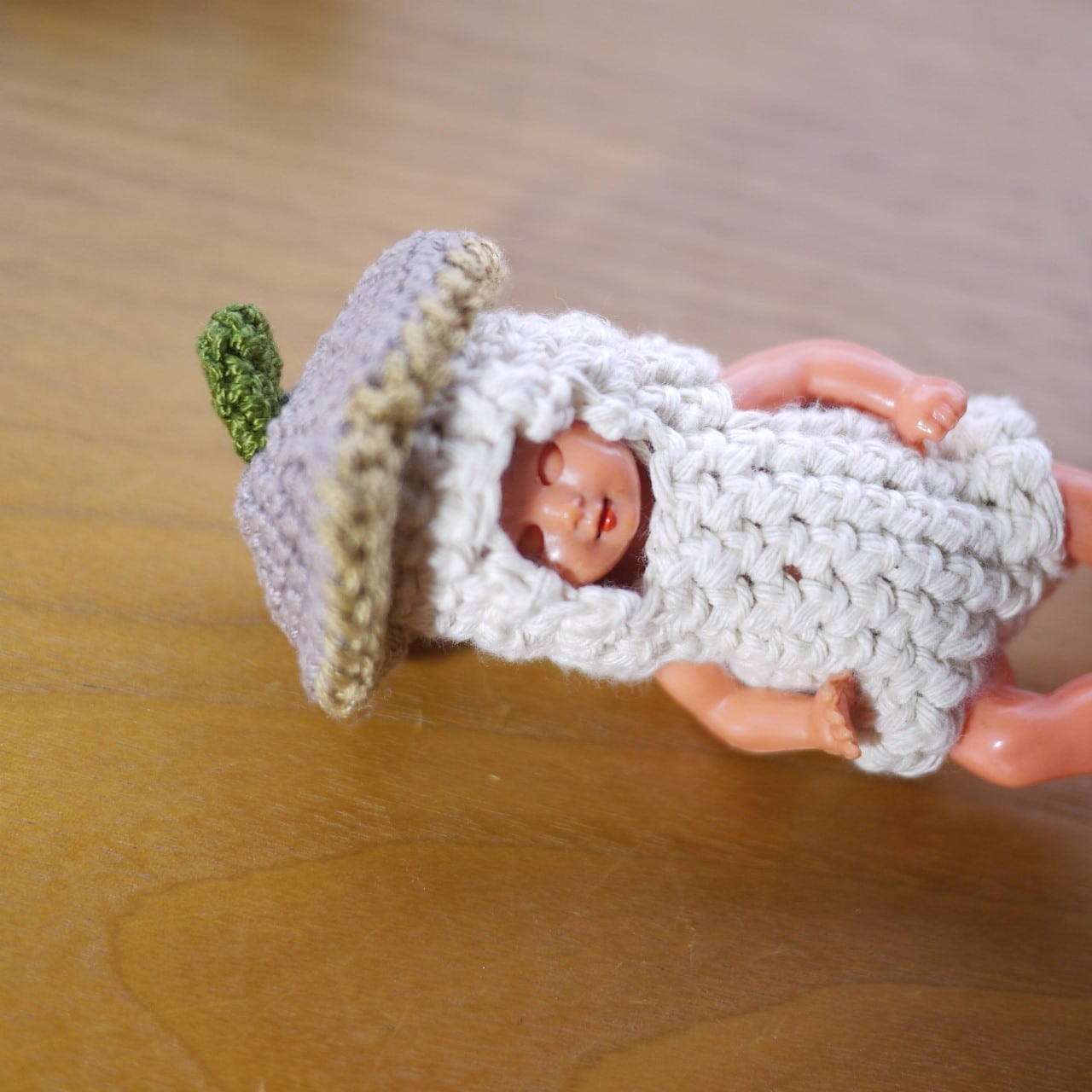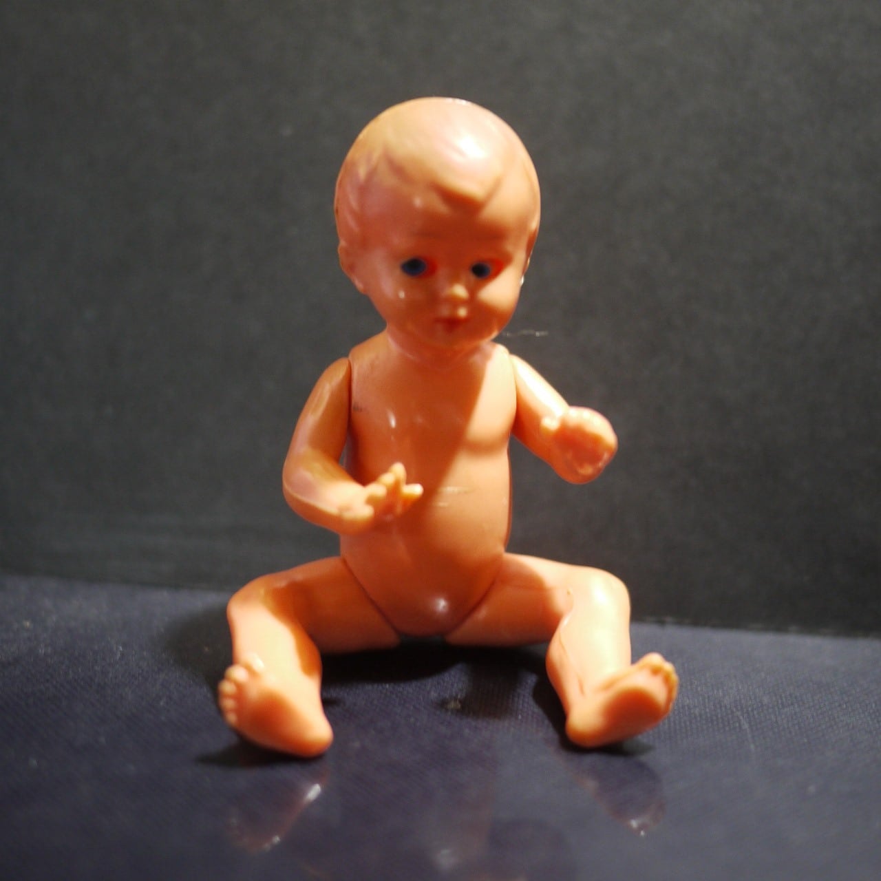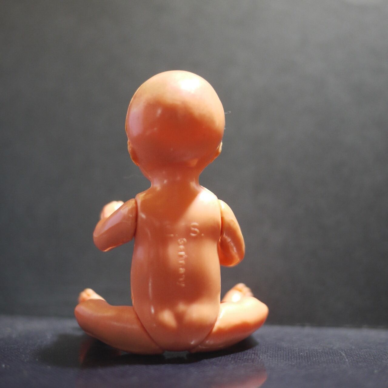 ひざを曲げた赤ちゃん体形です。お座りができます。自立しません。