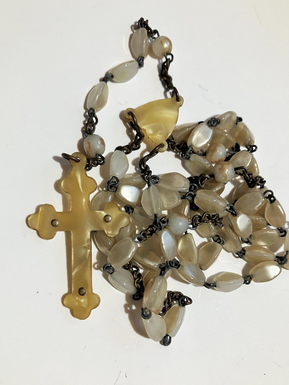 チェーン等に経年の、古色、ビーズに傷や摩耗があります。