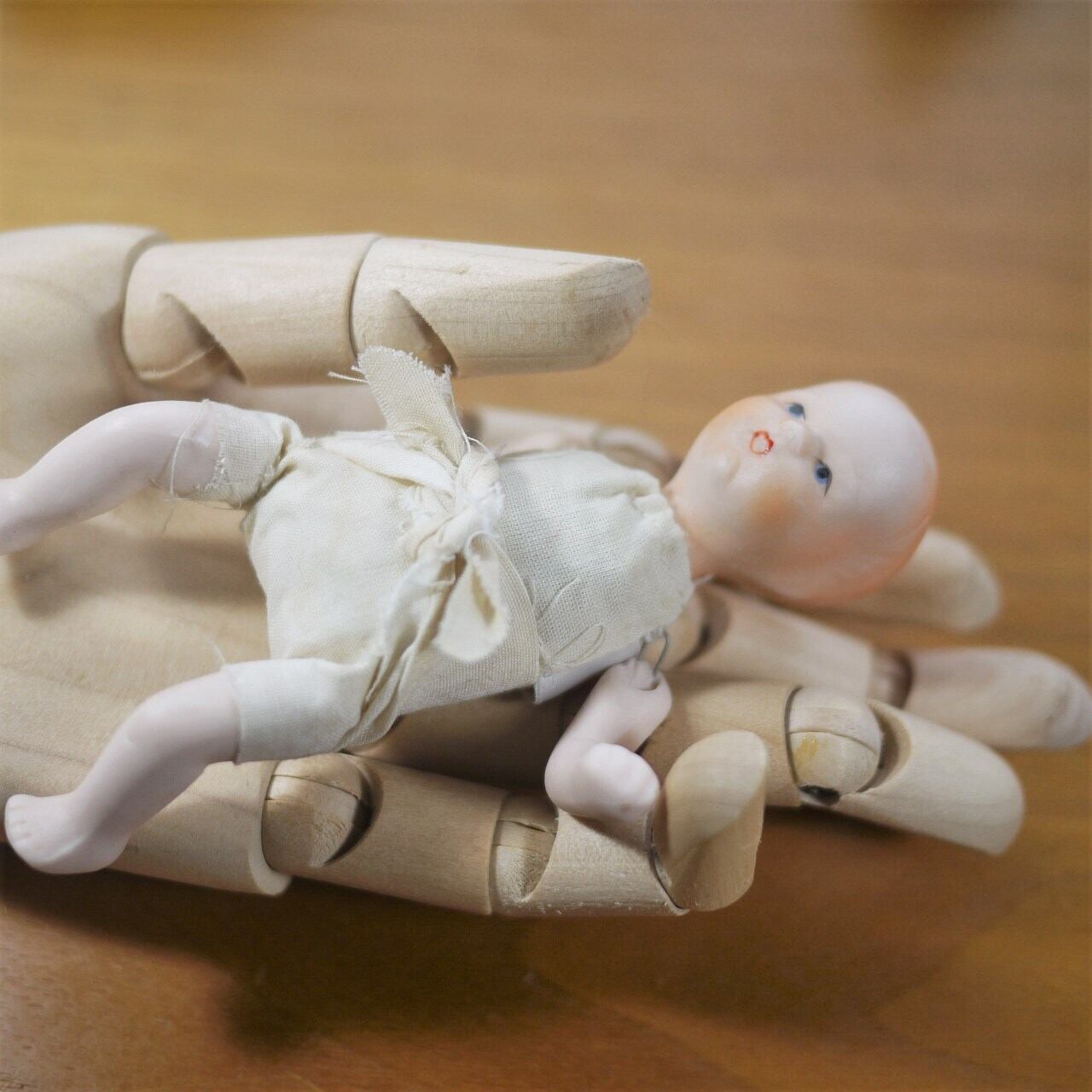 両手、両足はワイヤーでつながったビスクです。