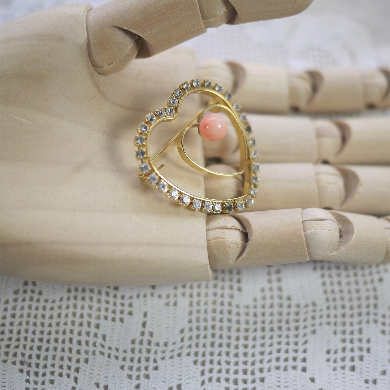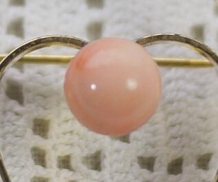 ピンクサンゴ ハート型ブローチ レトロ