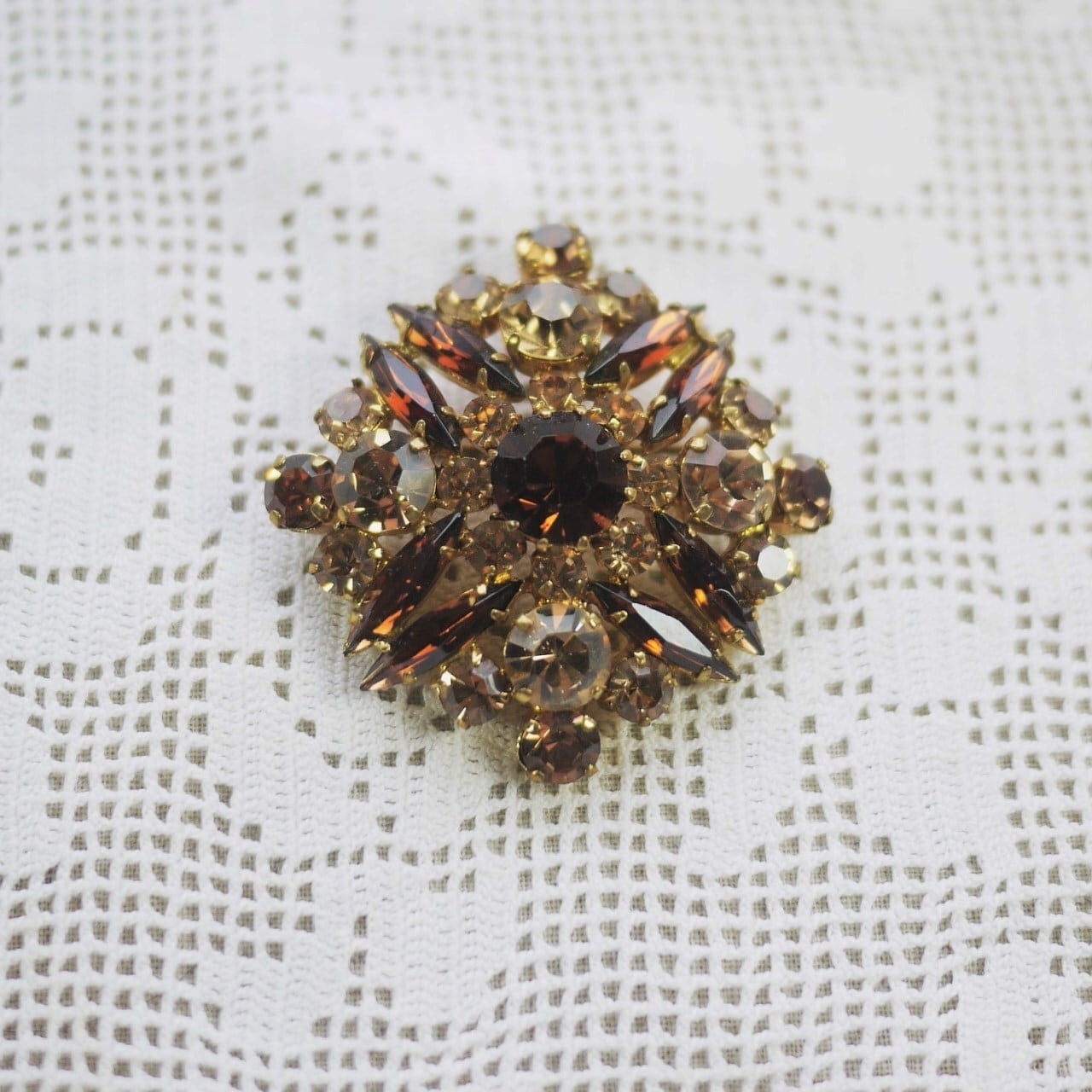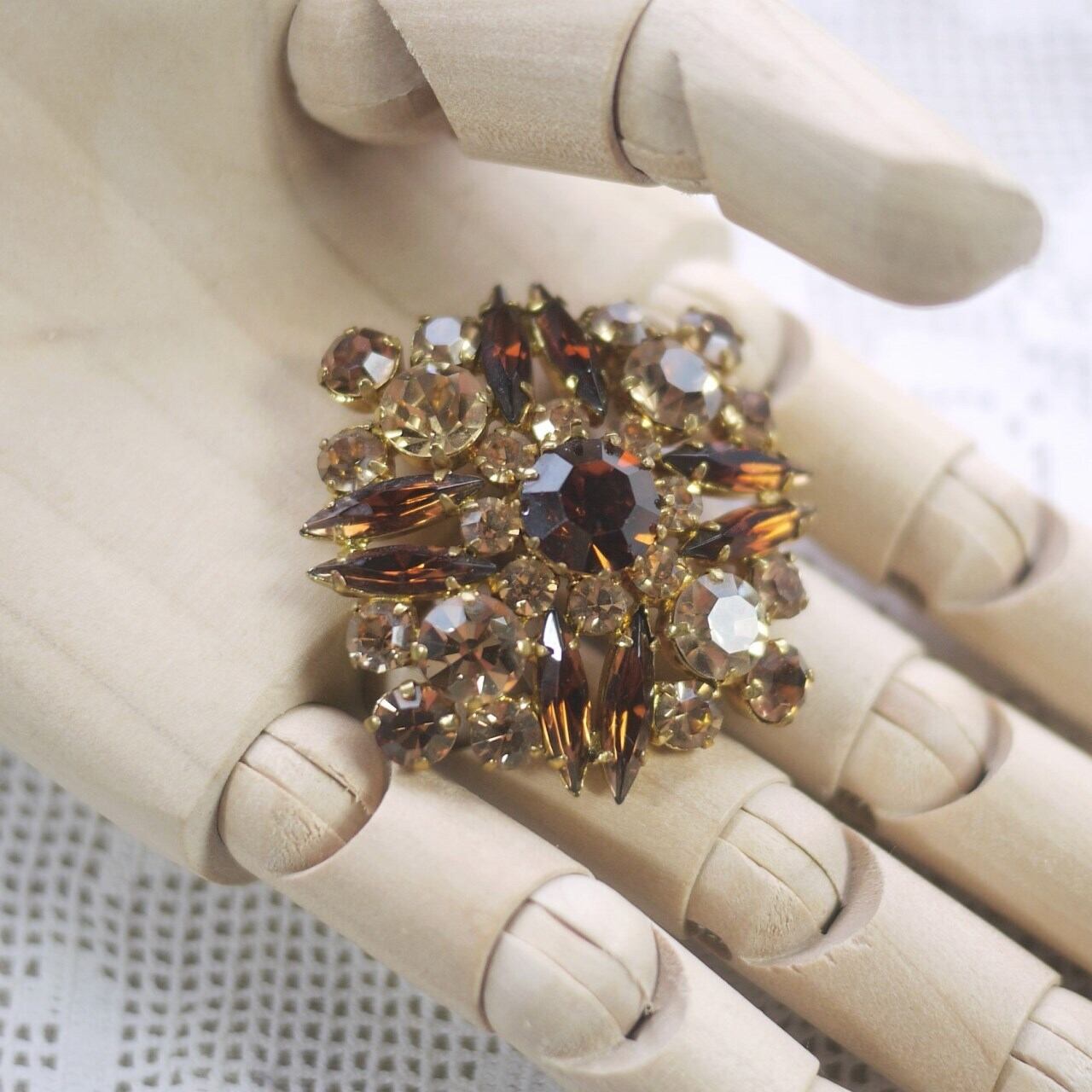 紅茶色ガラスのブローチ