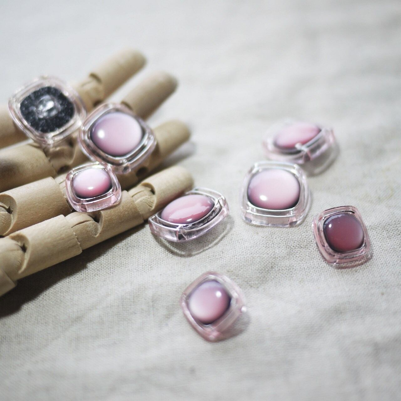 レトロなプラスチックボタンスモーキーピンク 大5小3セット