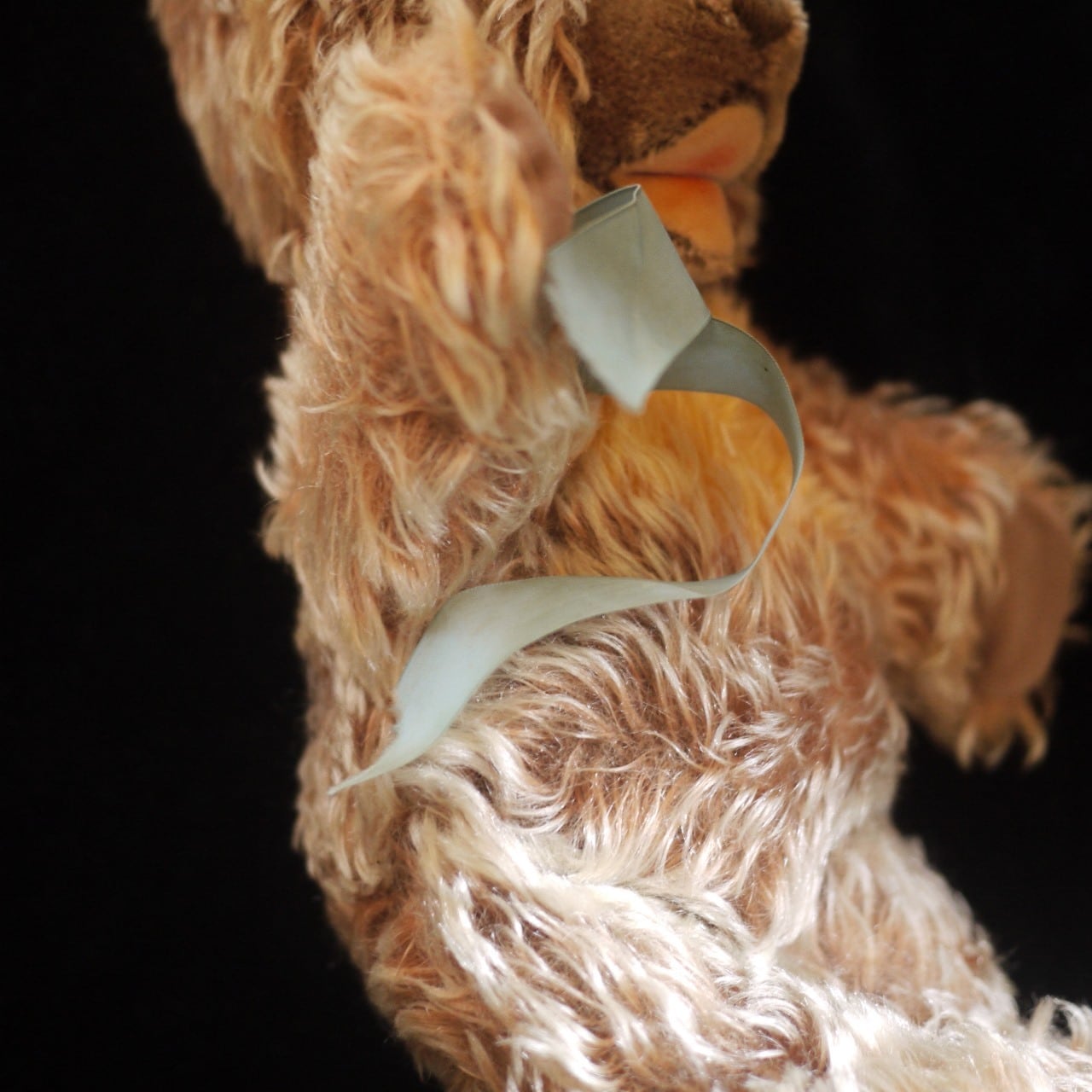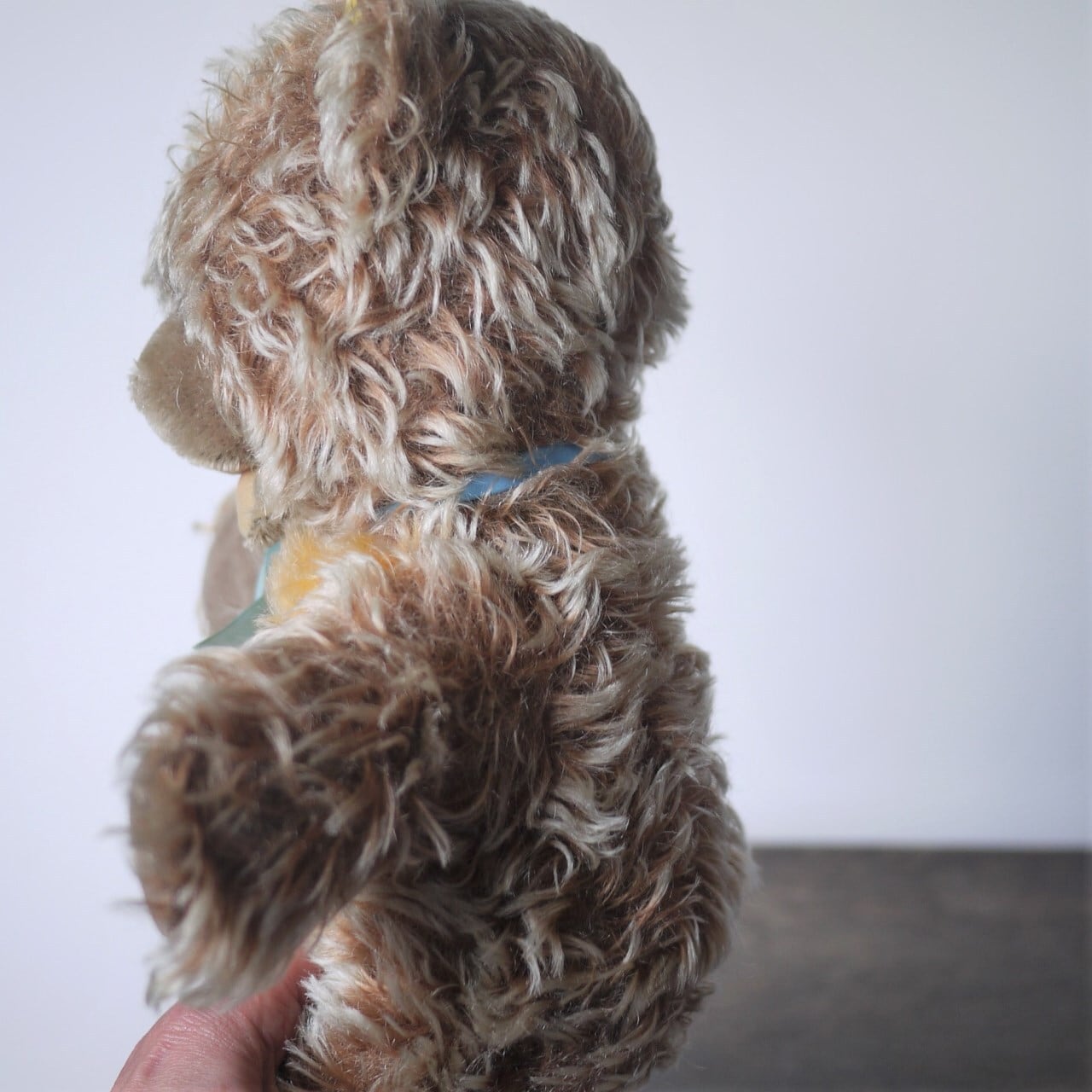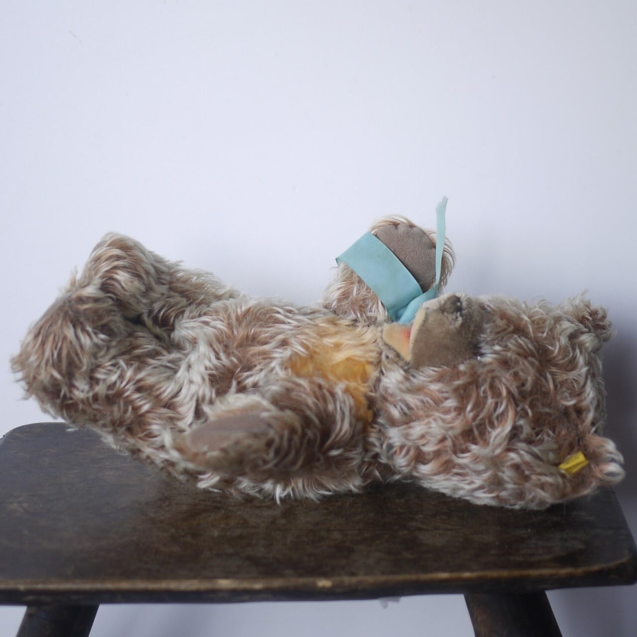 首に退色した古いリボンが巻かれています。