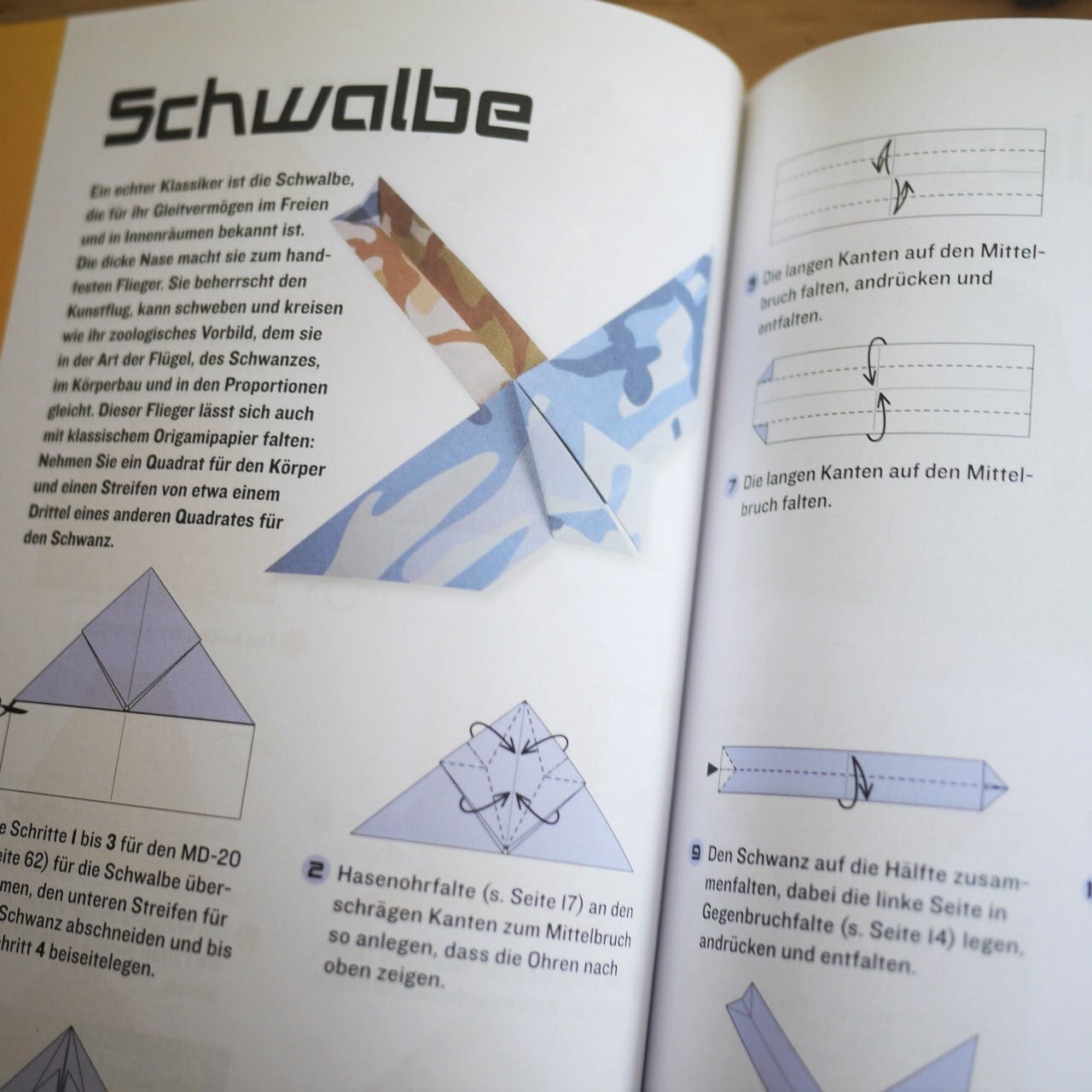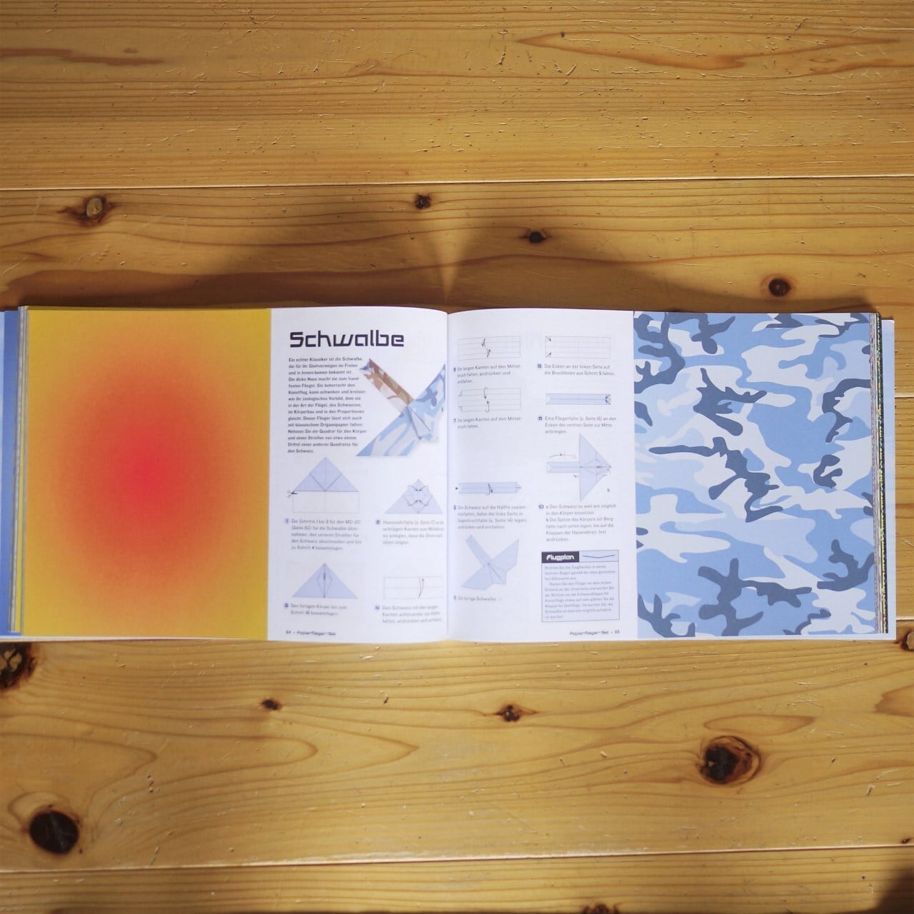 美しく印刷された紙飛行機のための用紙がついたペーパバック。
