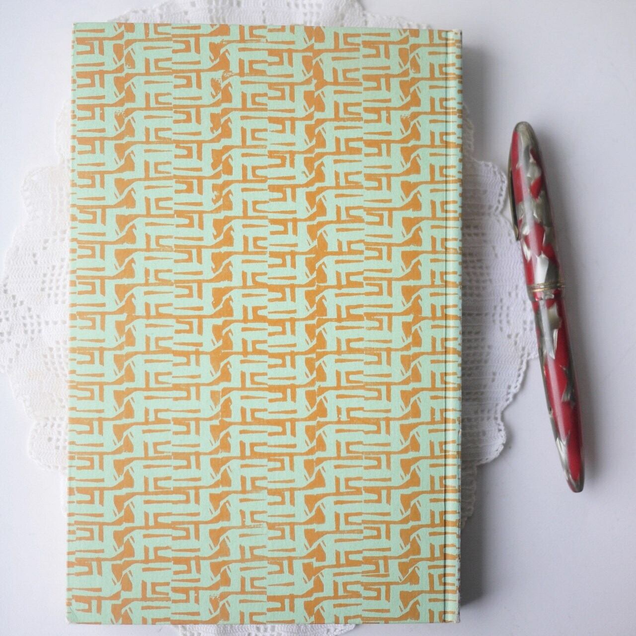 シックな絵柄パターンのハードカバー装丁に個性があります。