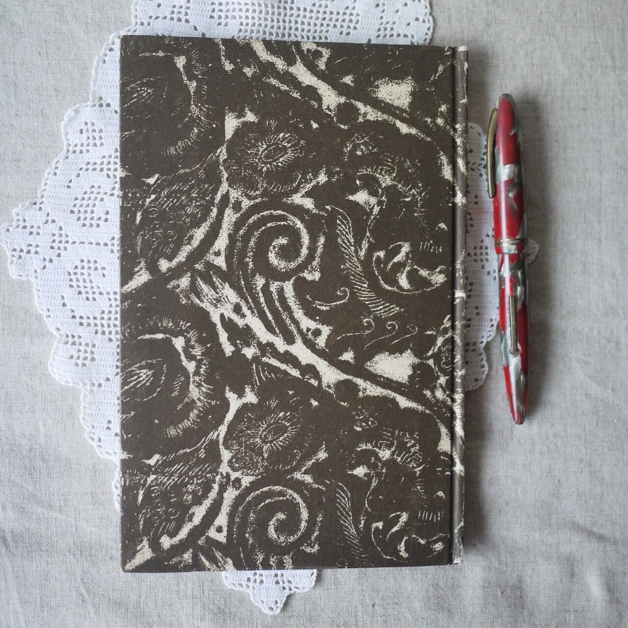 シックな絵柄パターンのハードカバー装丁に個性があります。