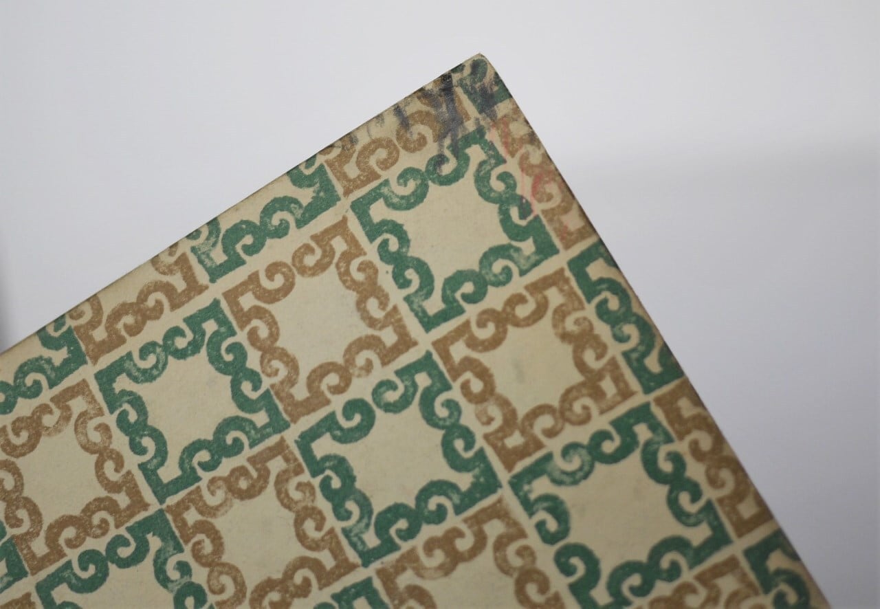 シックな絵柄パターンのハードカバー装丁に個性があります。