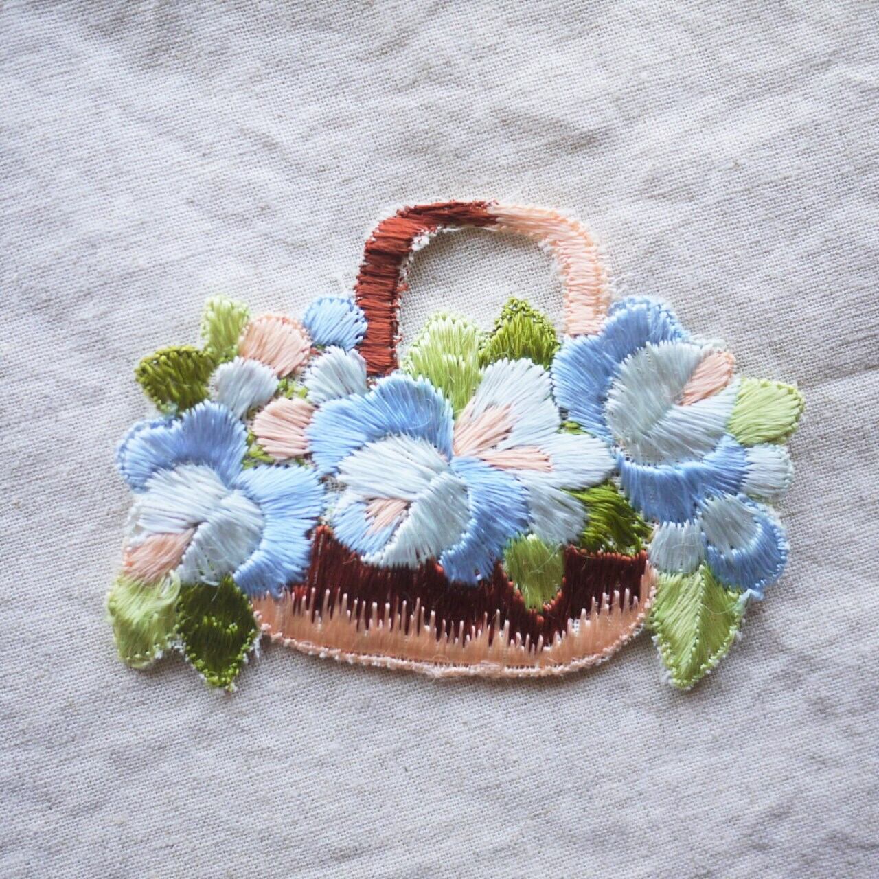 刺繍のモチーフ 花かご ドイツ アップリケ Patch A/B