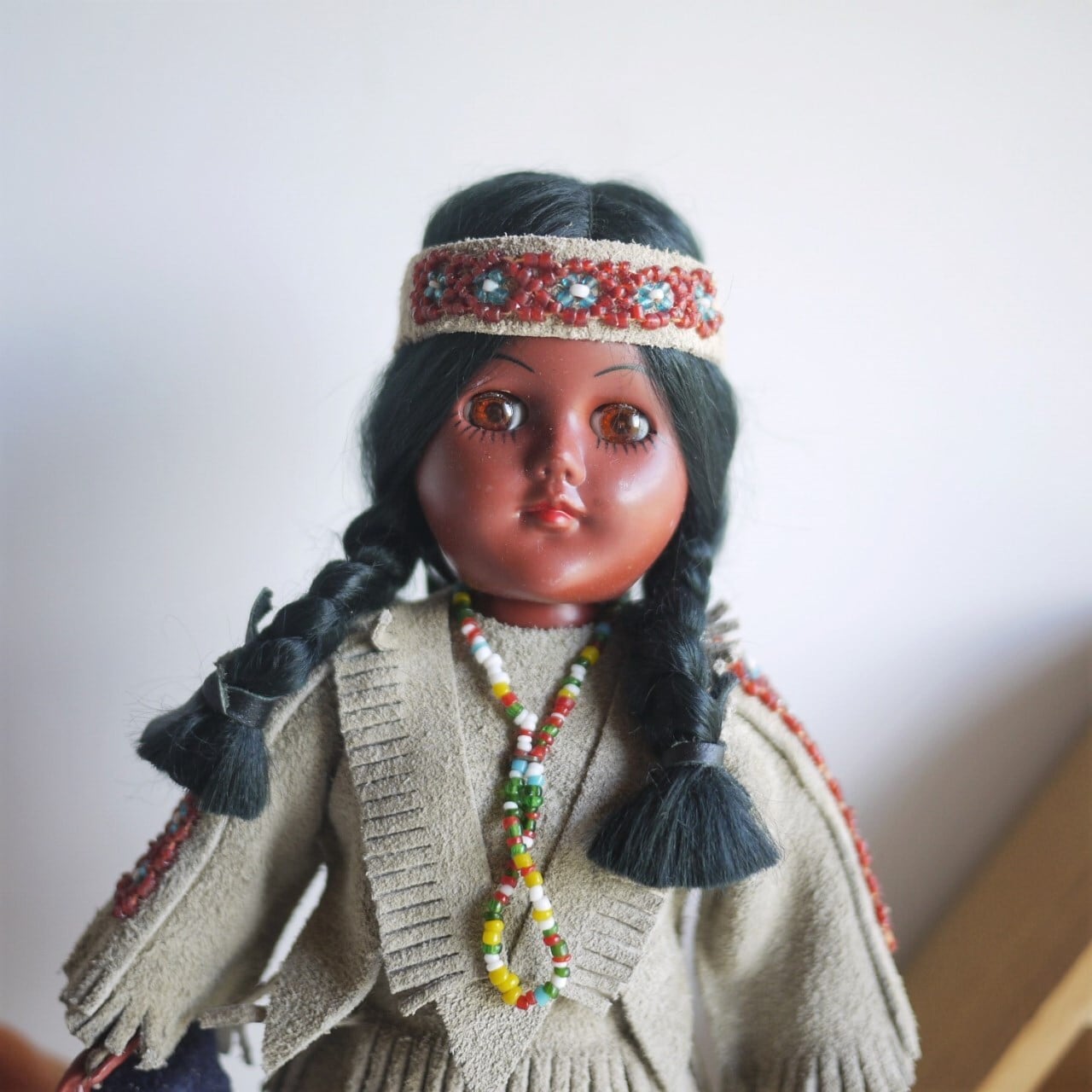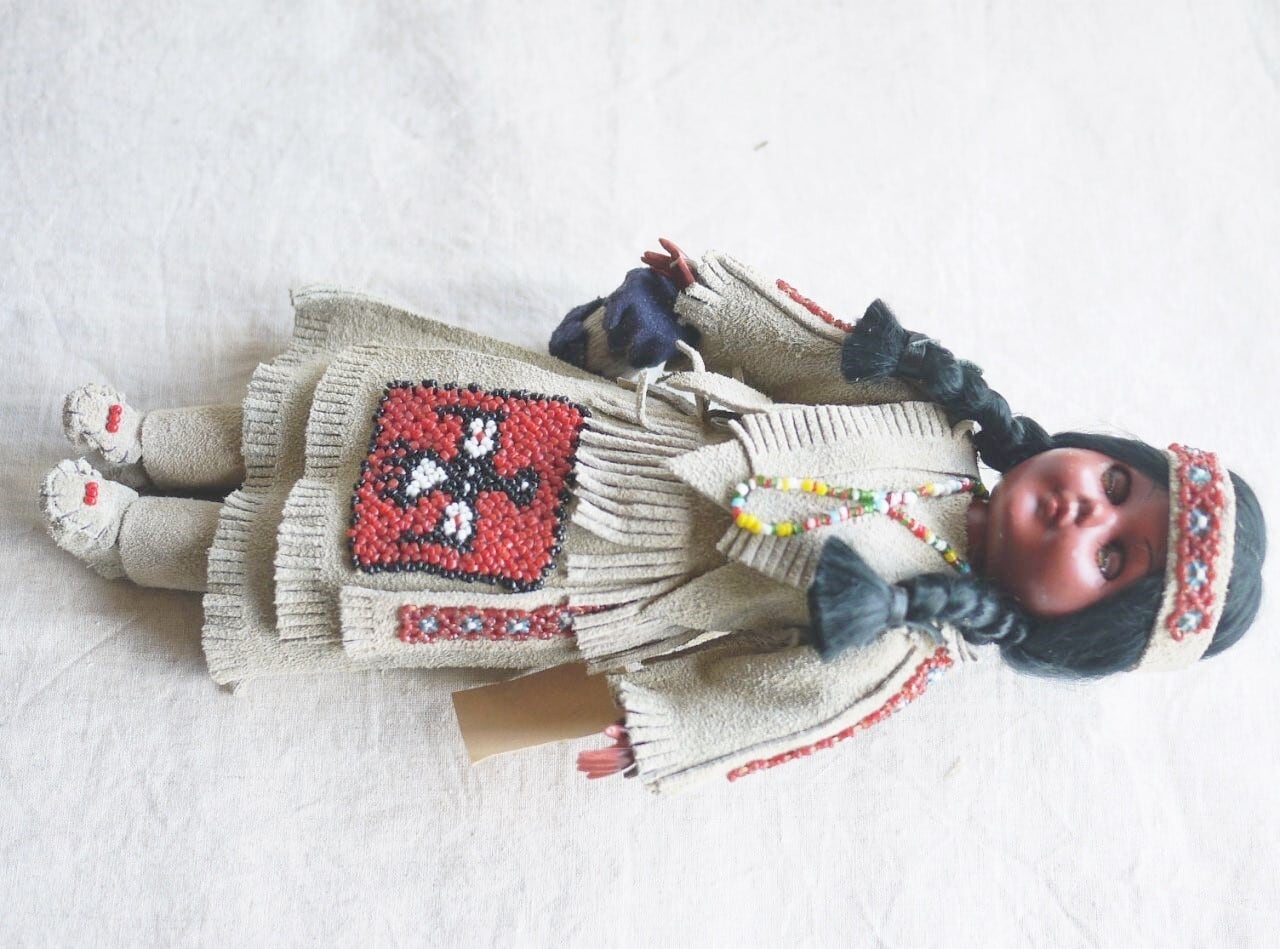 赤ちゃんを背負ったインディアンの女の子人形です。