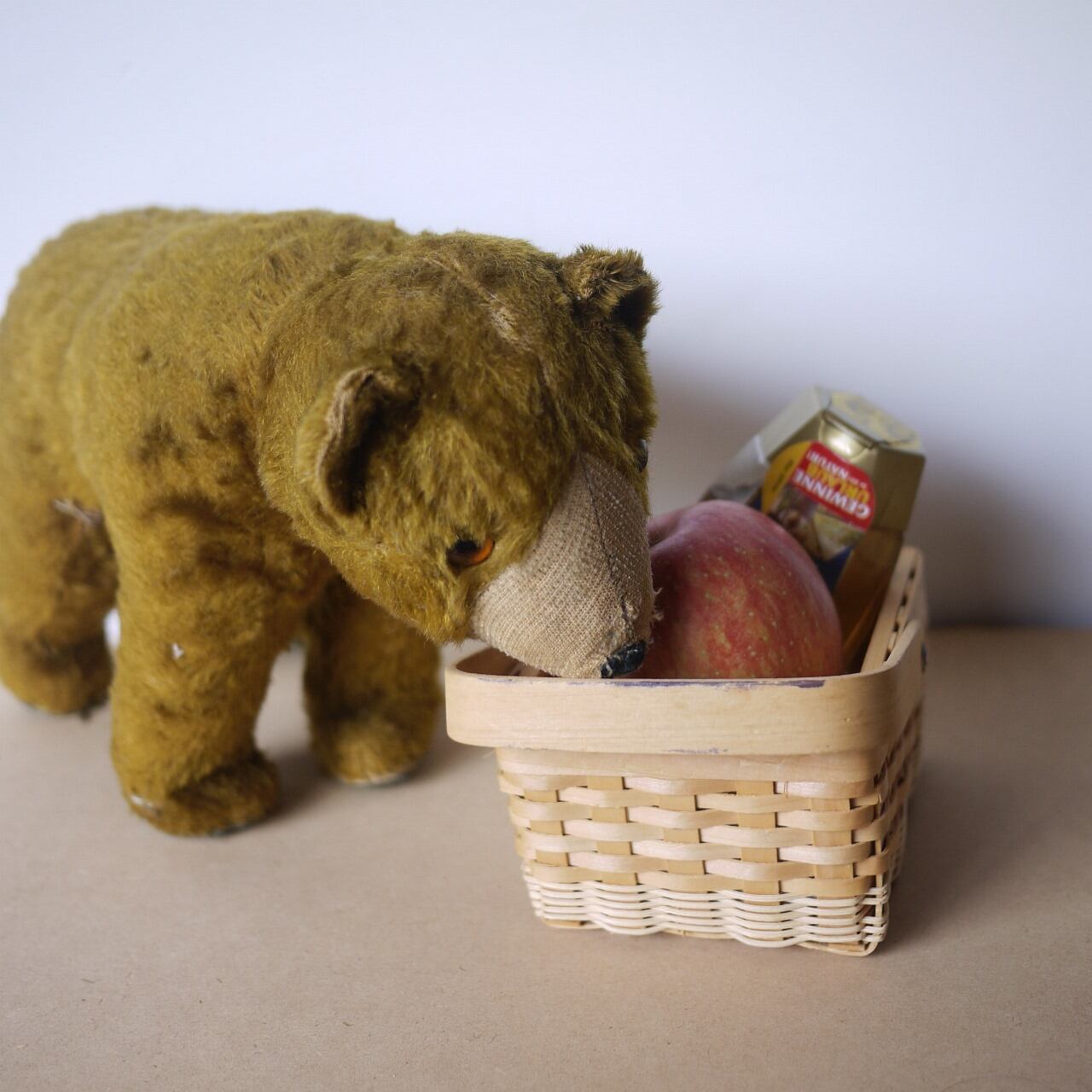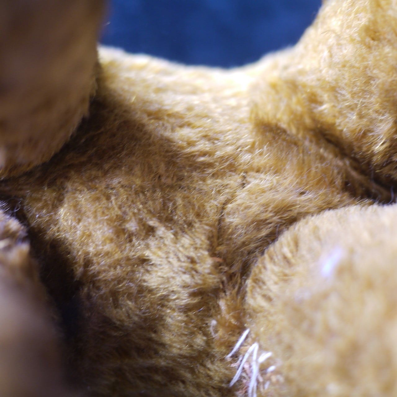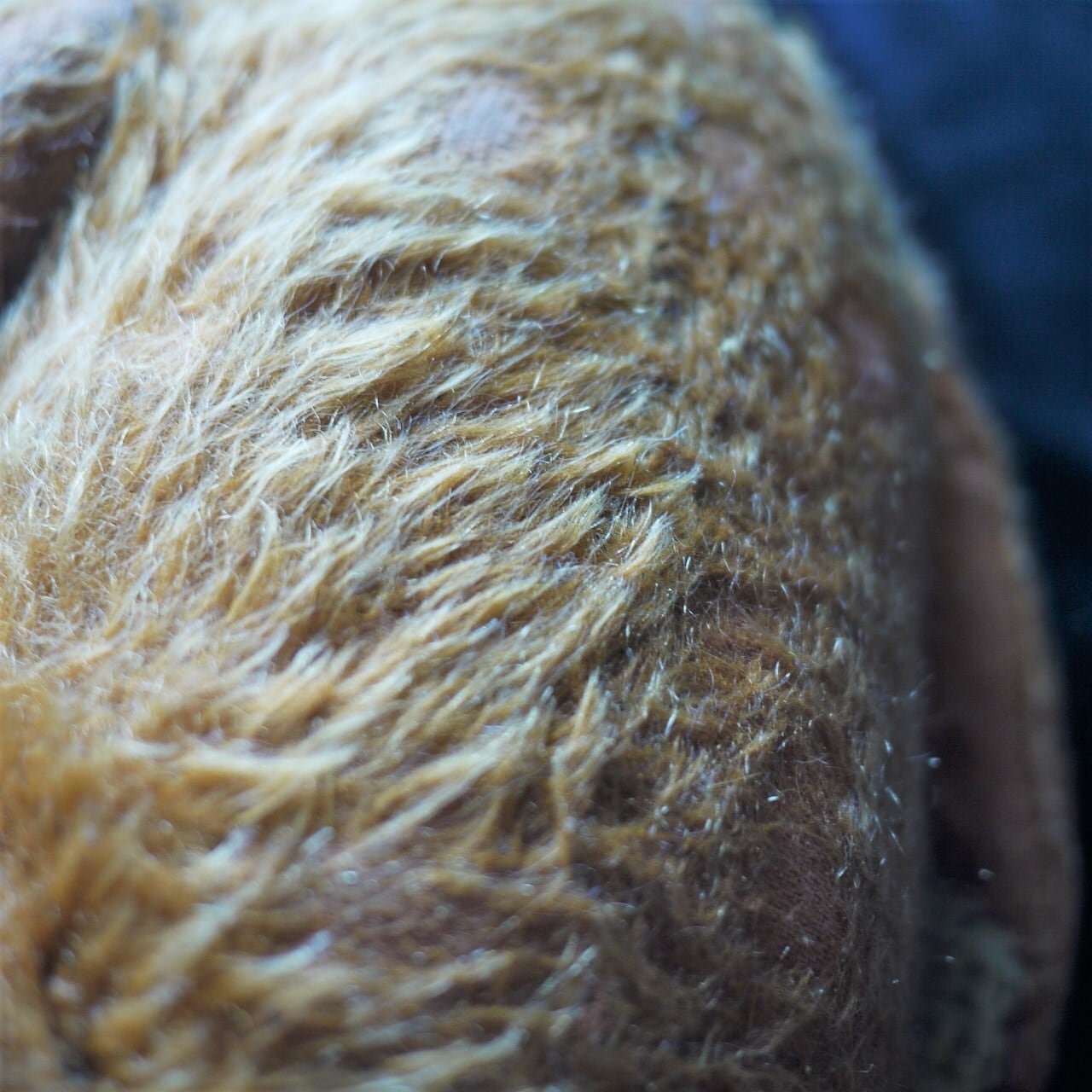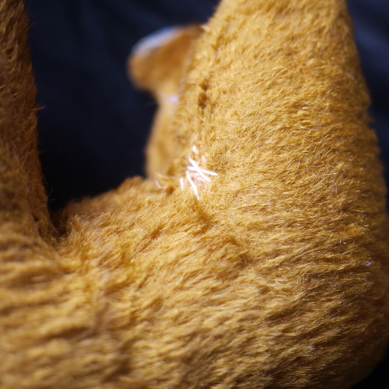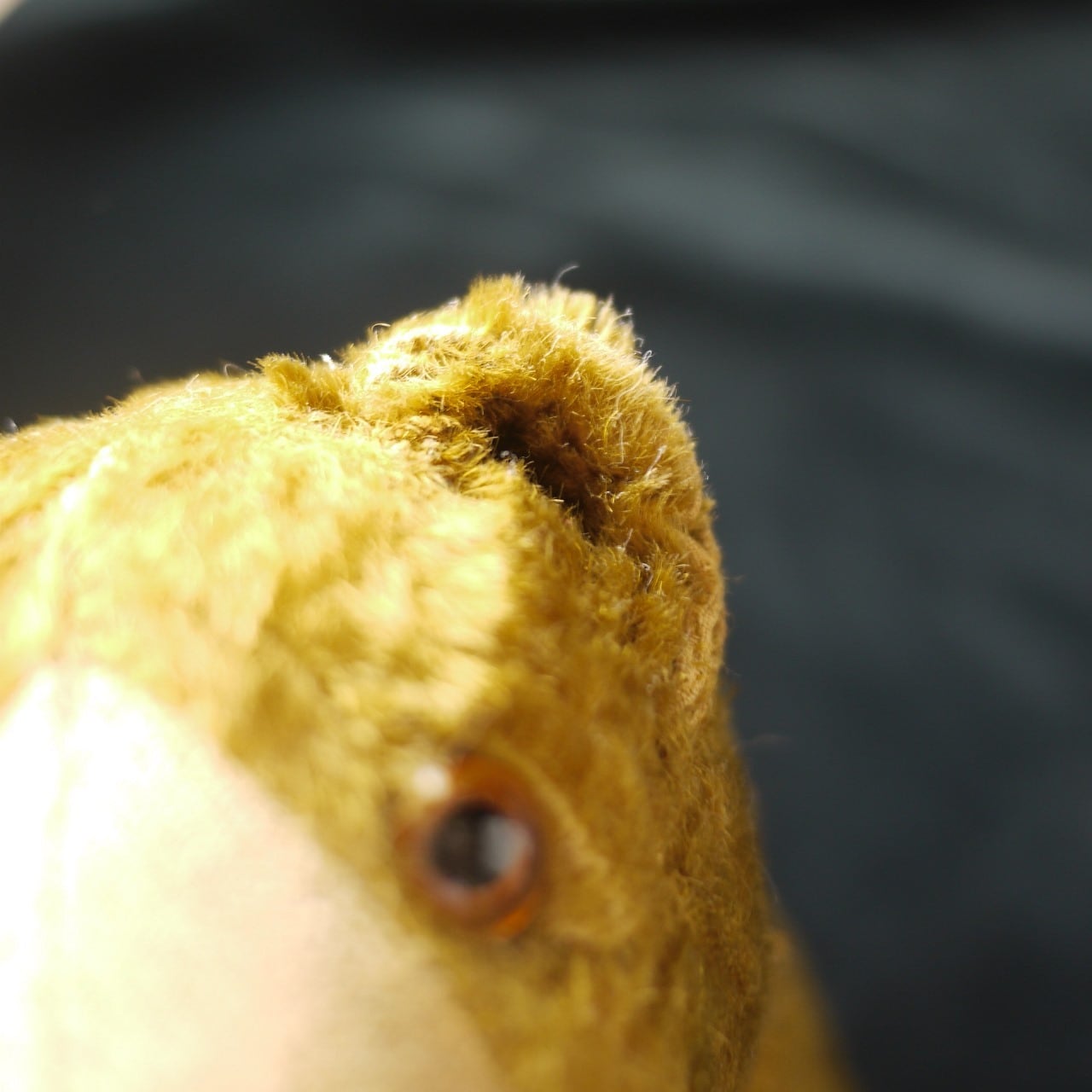 マズルのモヘアがすりきれ地布になり、鼻横に破れがあります。