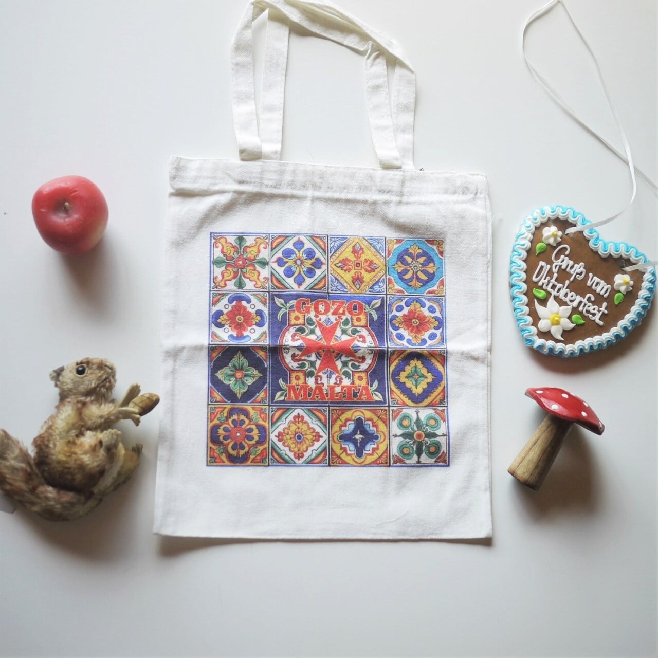 マルタタイルの伝統的な模様を生かしたエコバッグ。