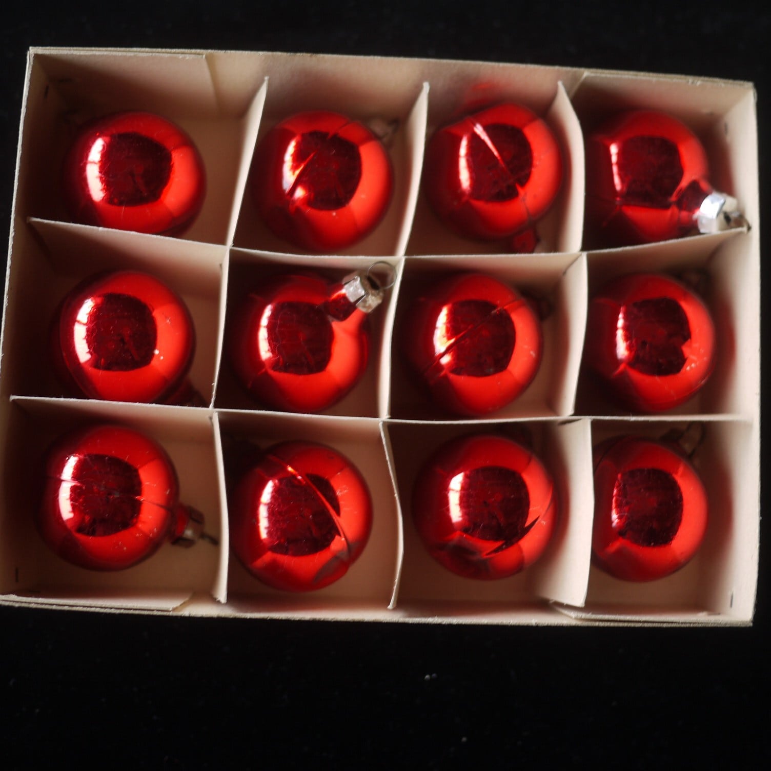 [ガラスクーゲル赤 12P箱 GDRドイツ マーキュリーガラス]