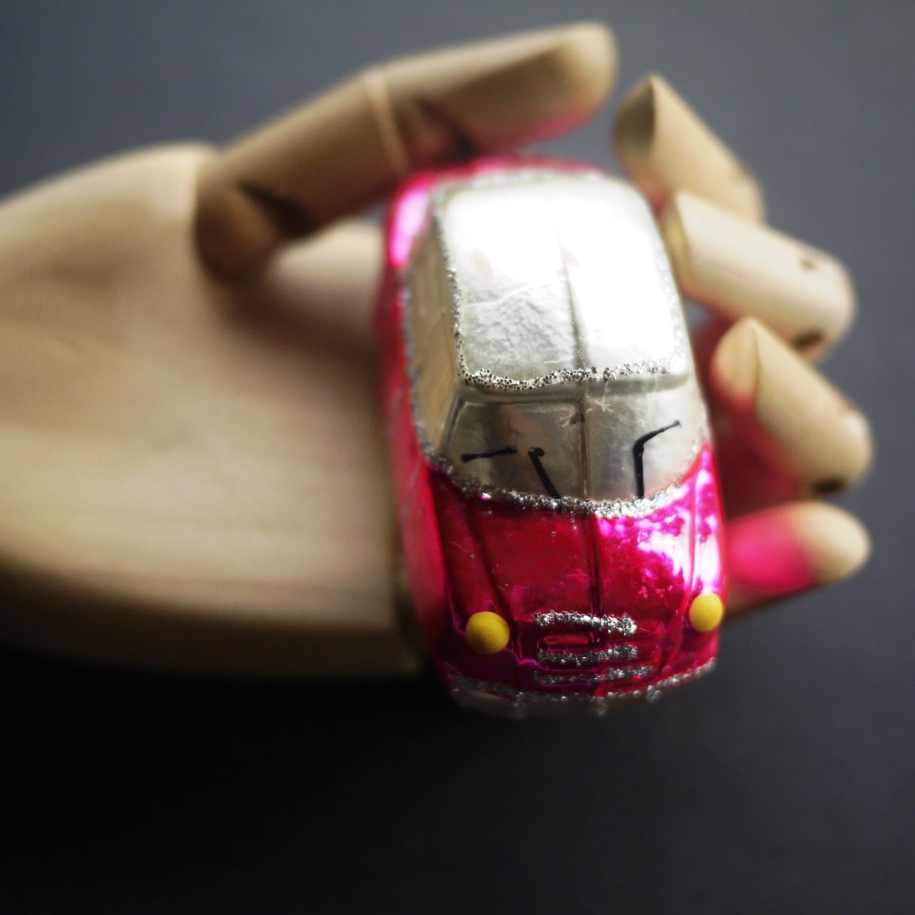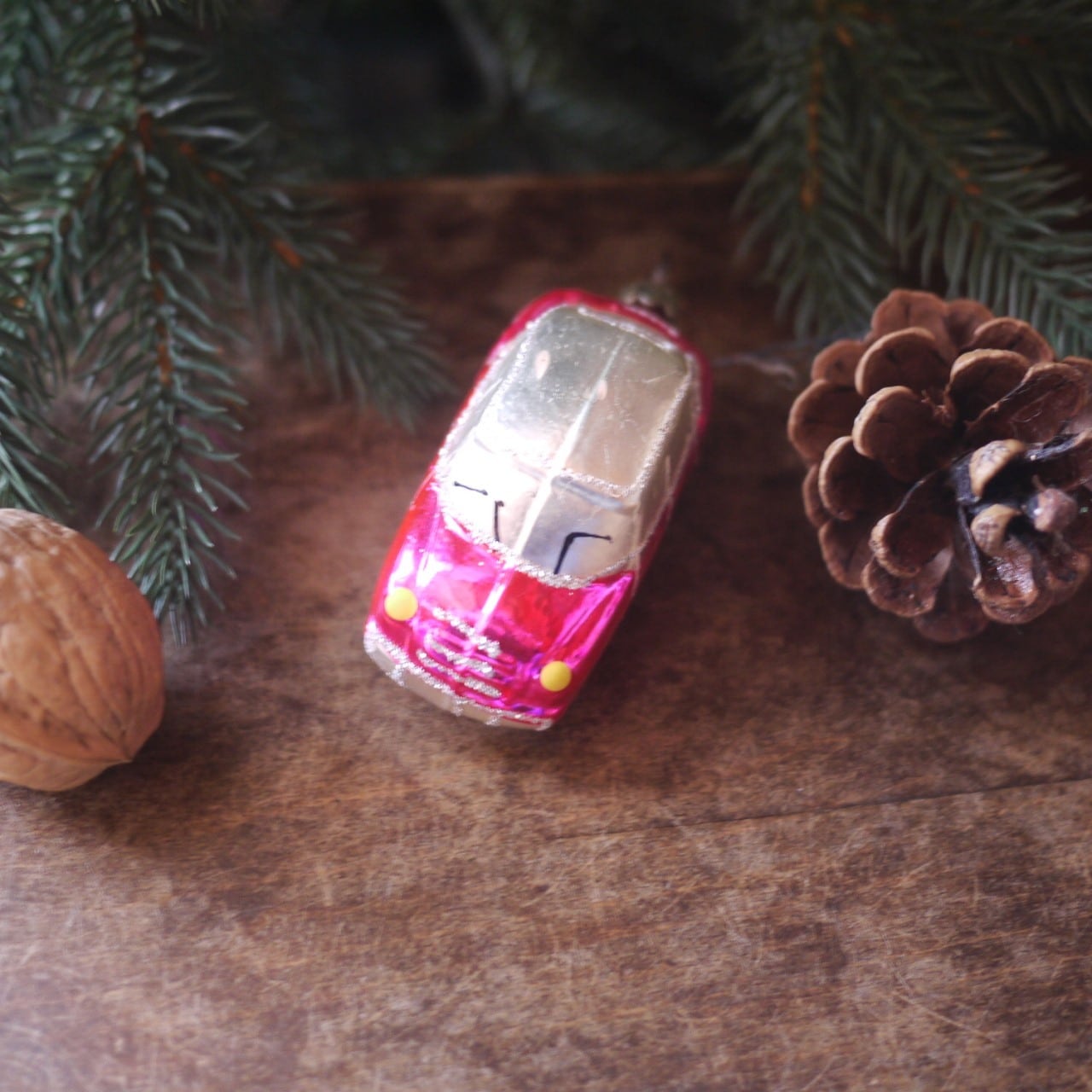 [ガラスオーナメント 赤い車 クリスマスツリー チェコスロバキア]