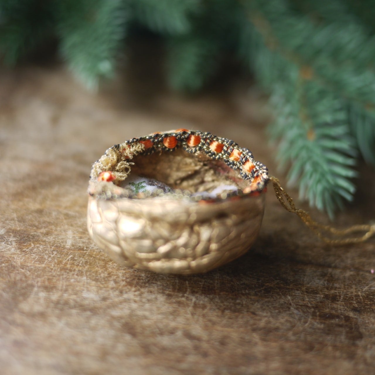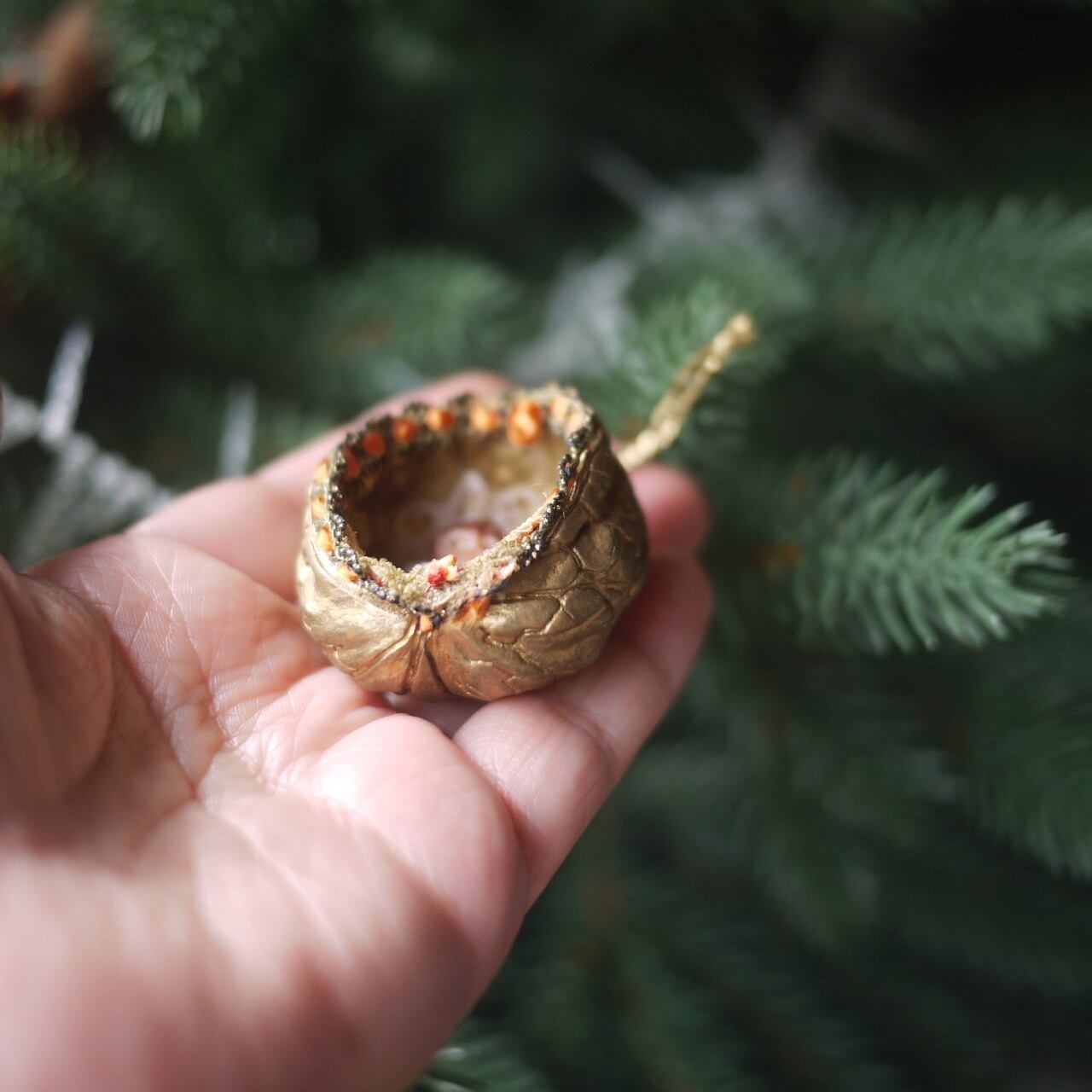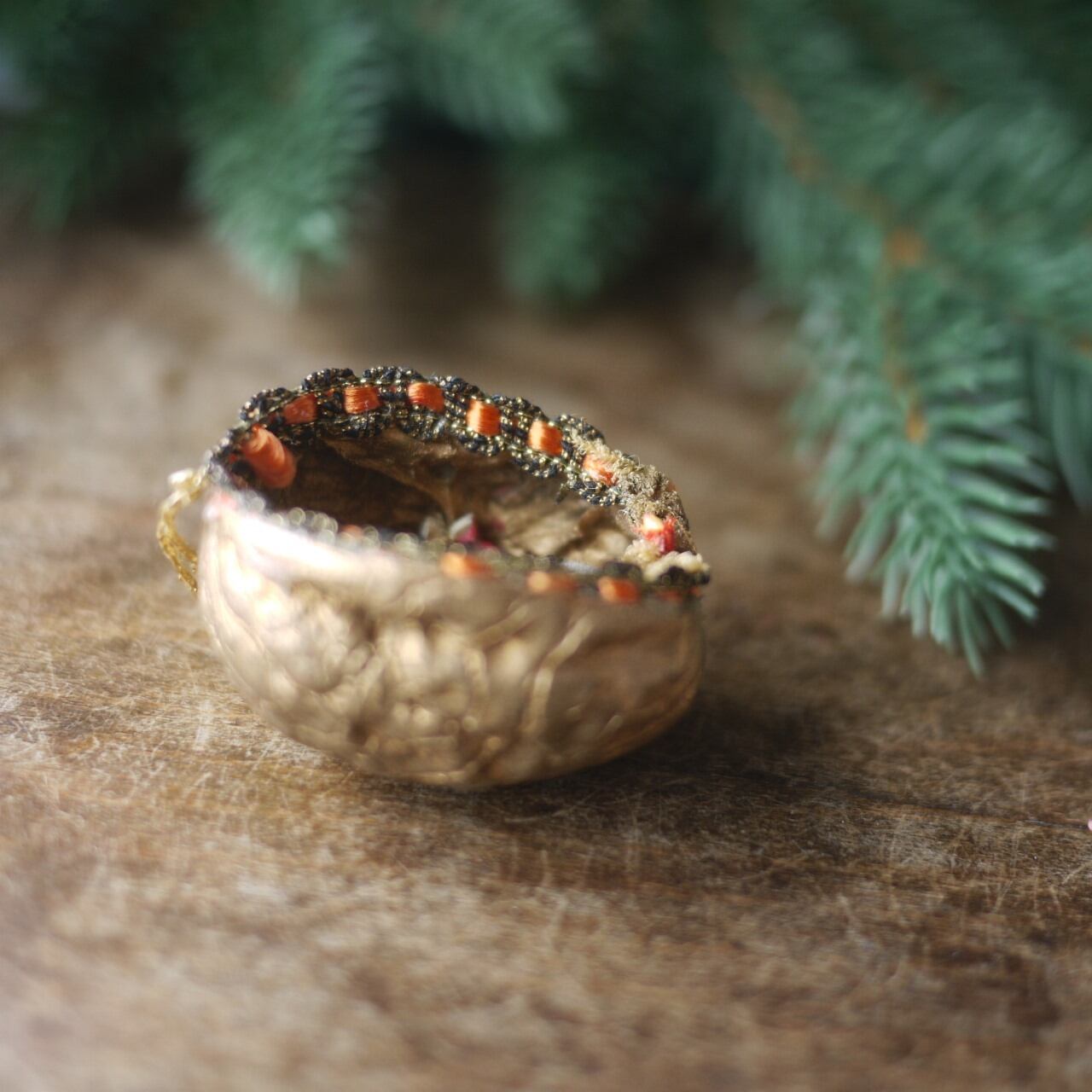 クルミの周りはオレンジとゴールドのブレード。