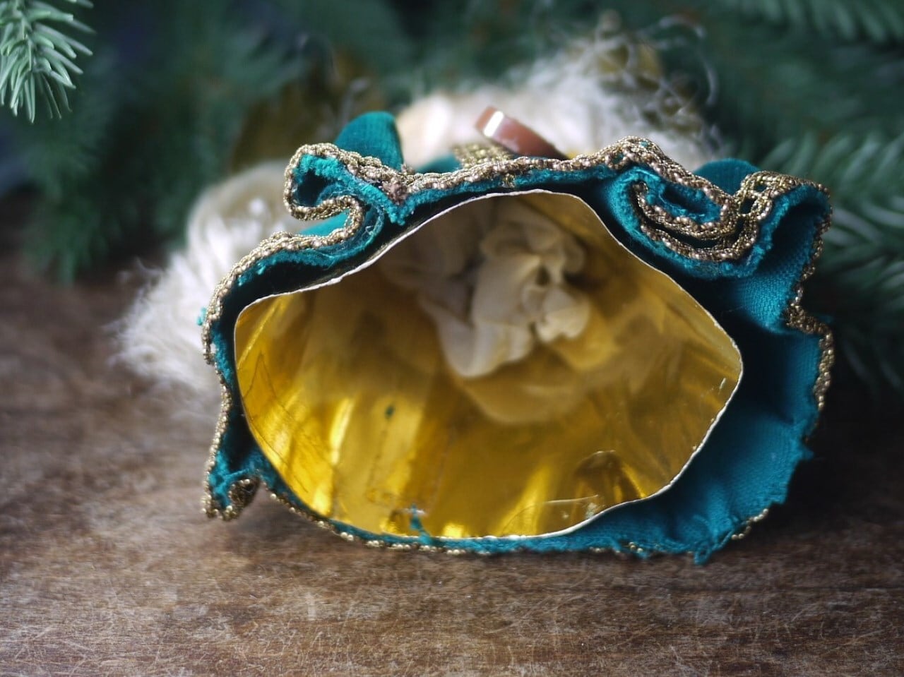 円錐型の紙の土台の上にたっぷりとベルベットのマント
