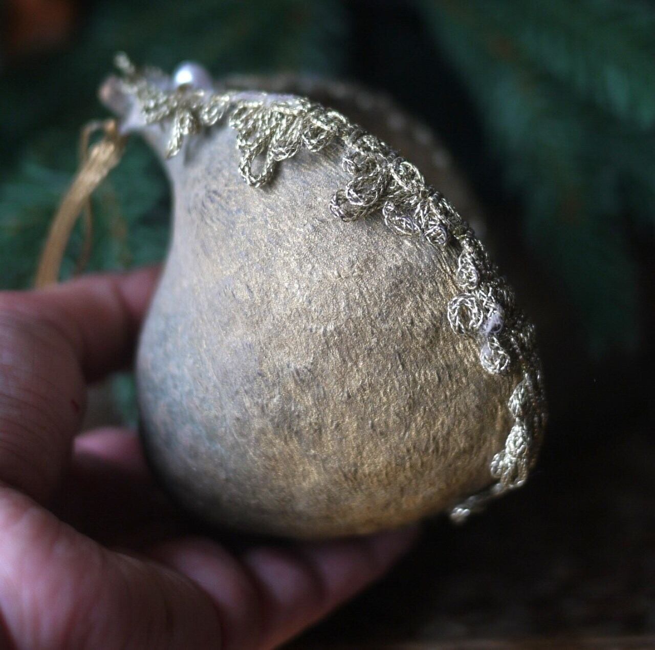 ゴールドのブレードで縁取り、星飾りで聖なる神の誕生を祝うオーナメントです。