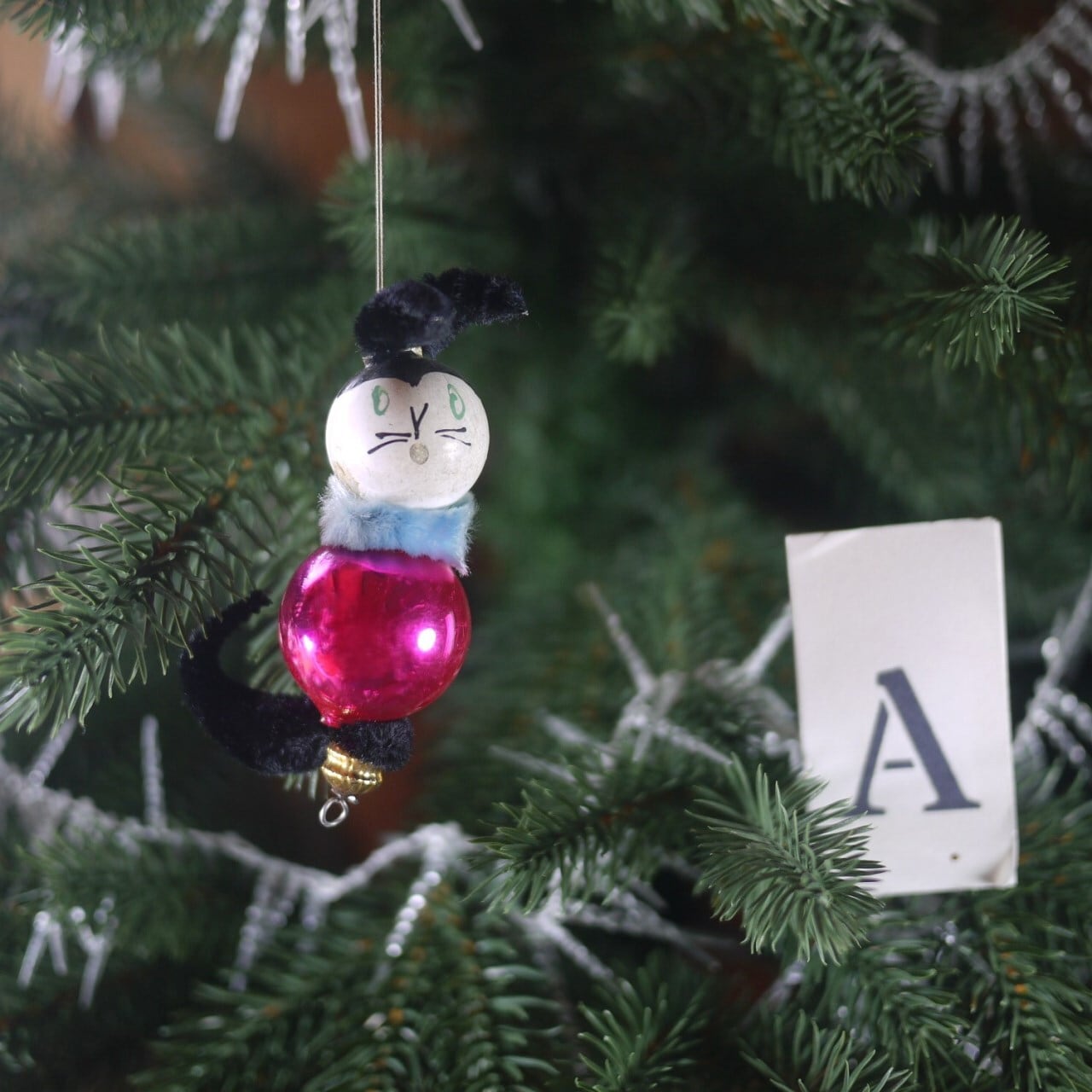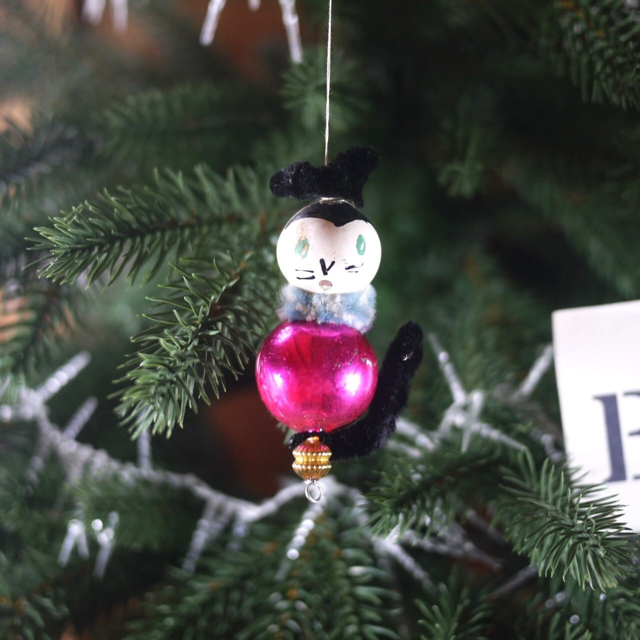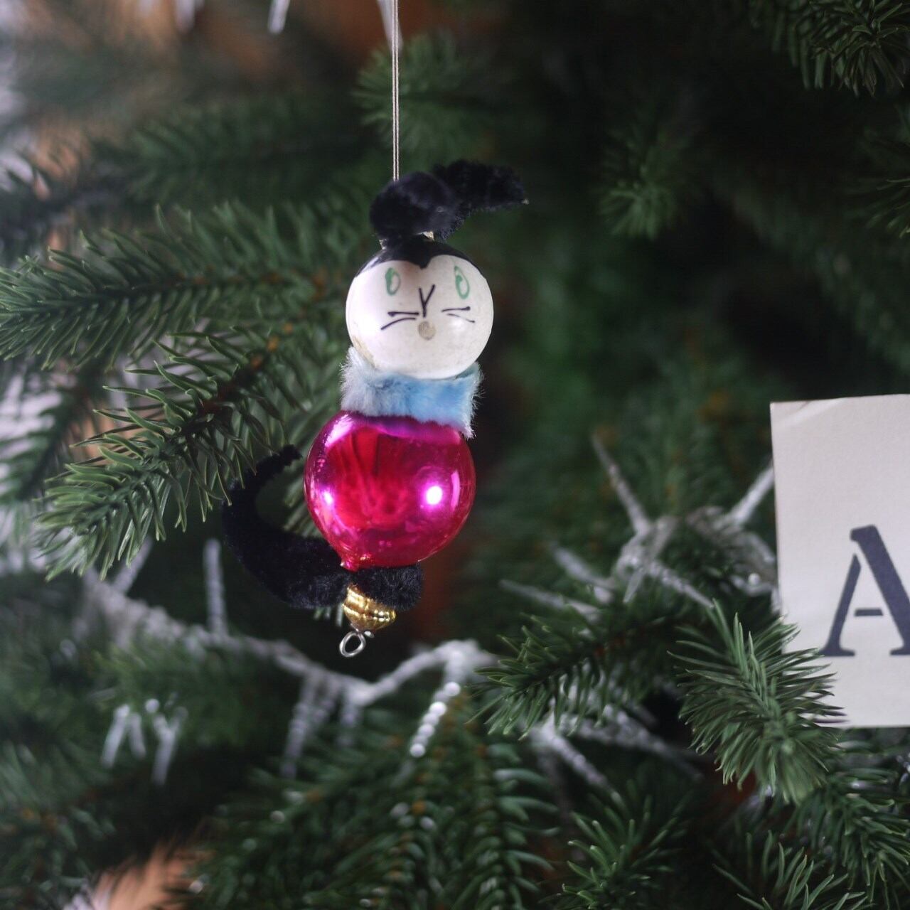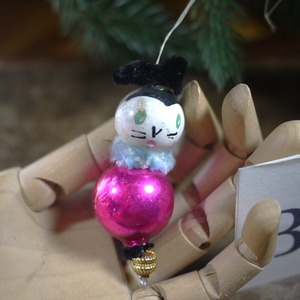 クリスマスオーナメント モール猫人形 吹きガラスビーズ チェコスロバキア