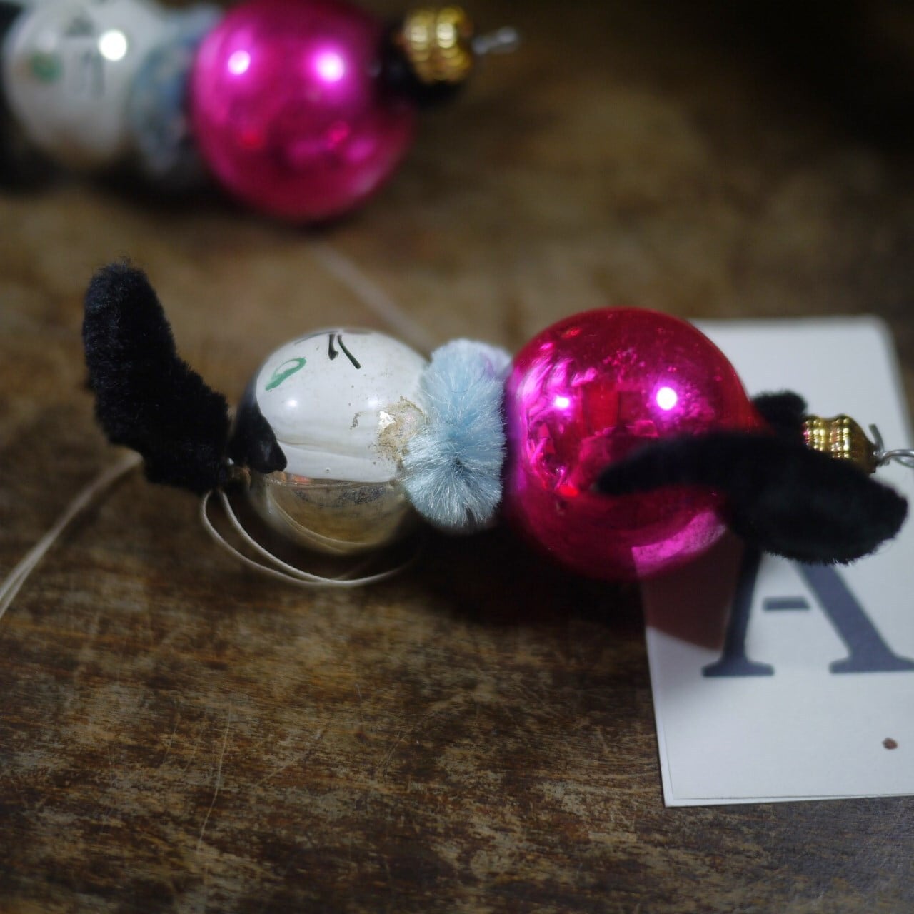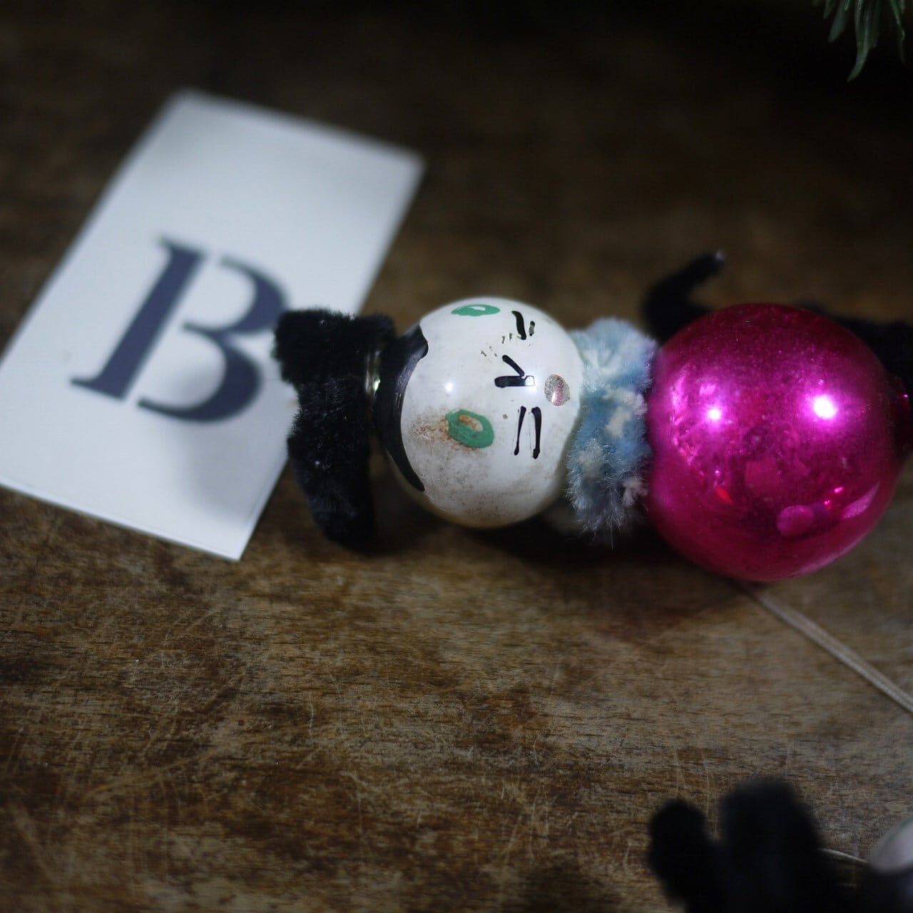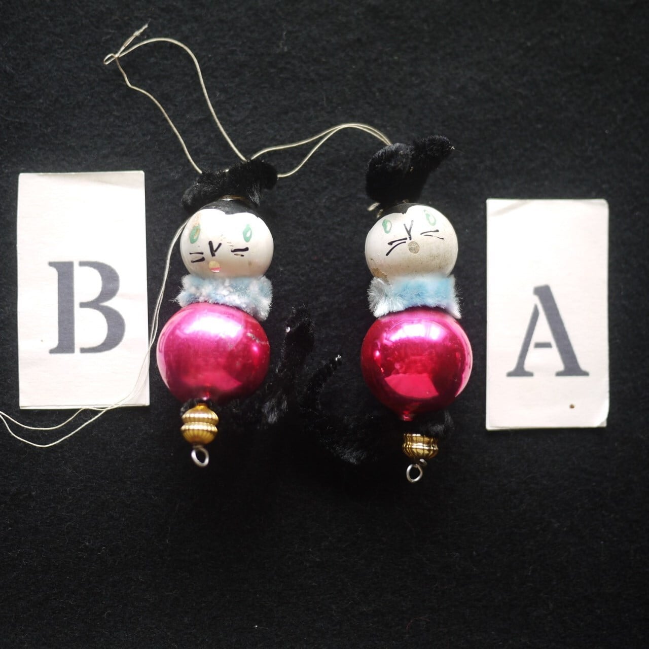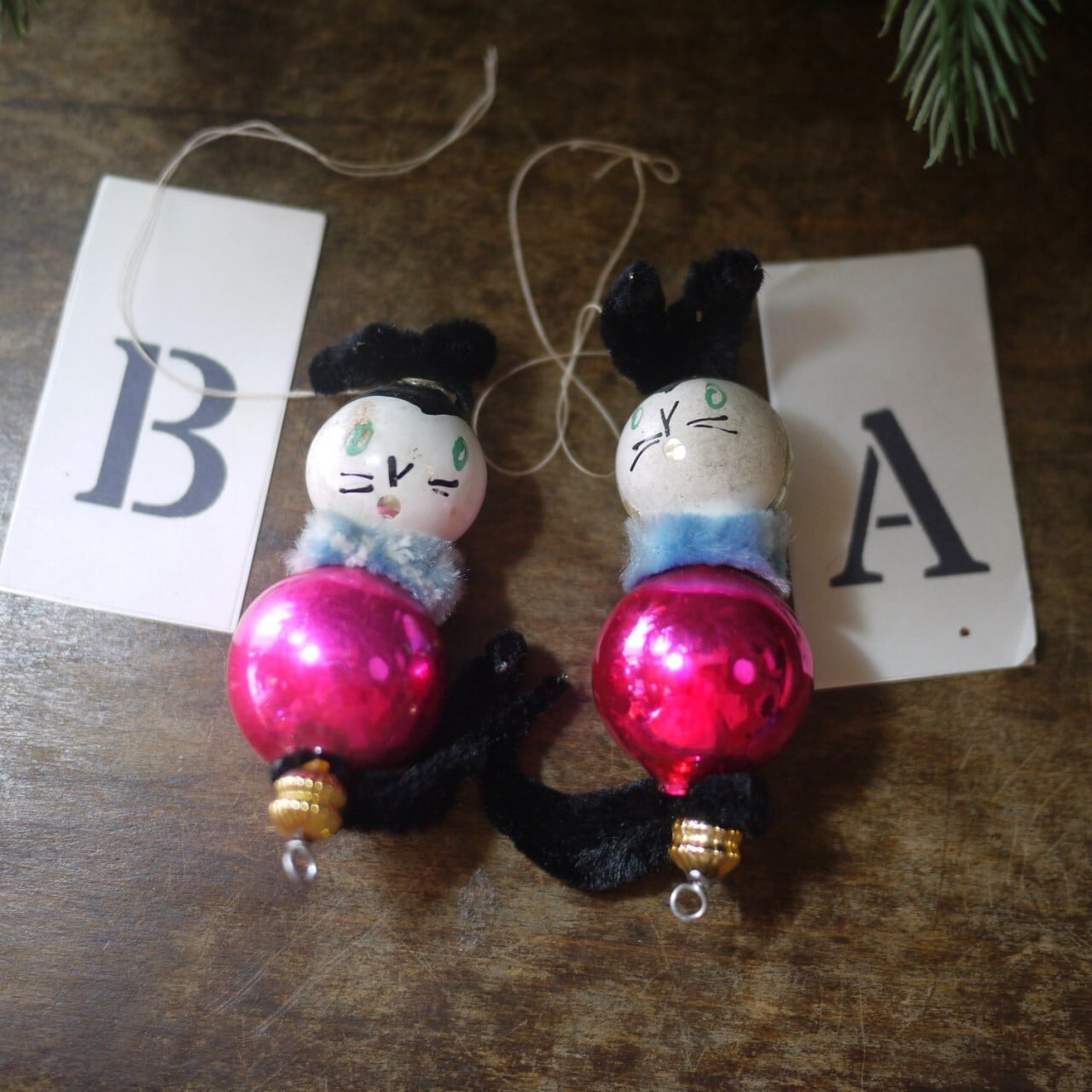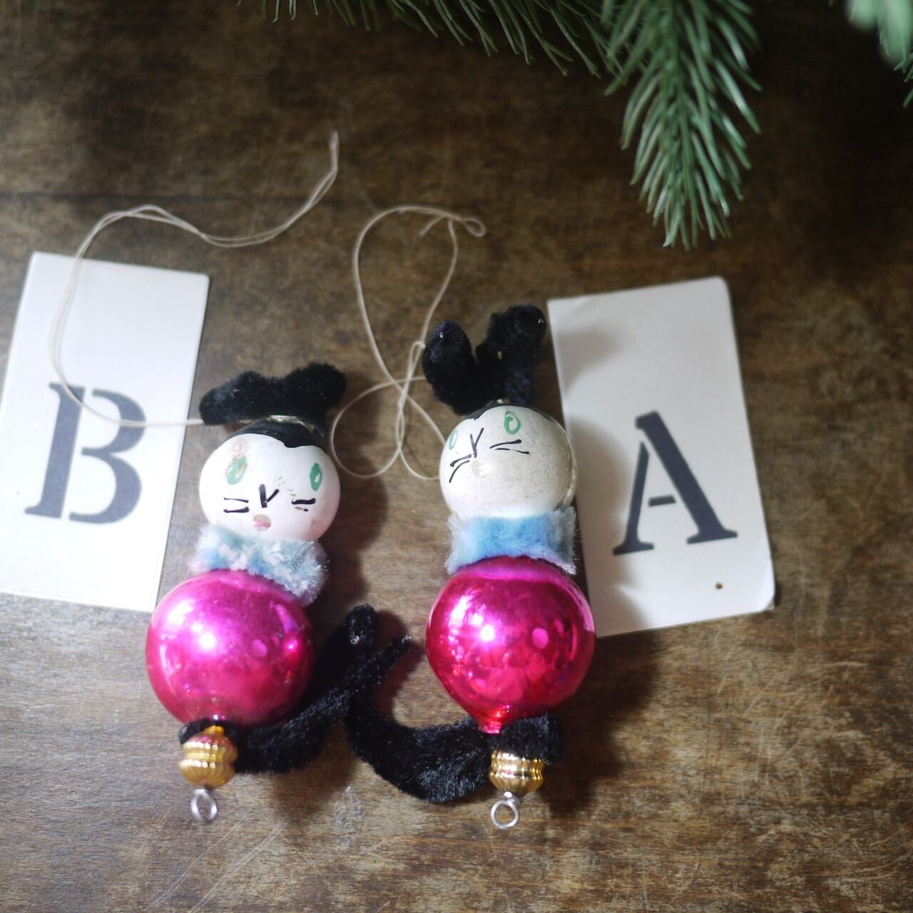 [クリスマスオーナメント モール猫人形 吹きガラスビーズ チェコスロバキア]