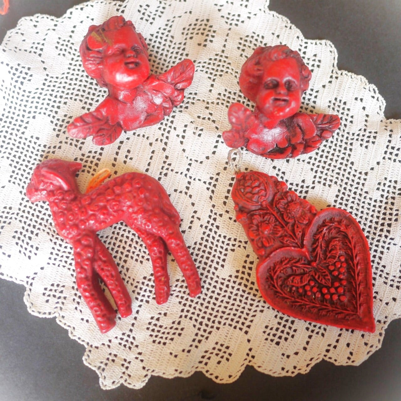 ヴィンテージ、赤いクリスマスワックス飾り。