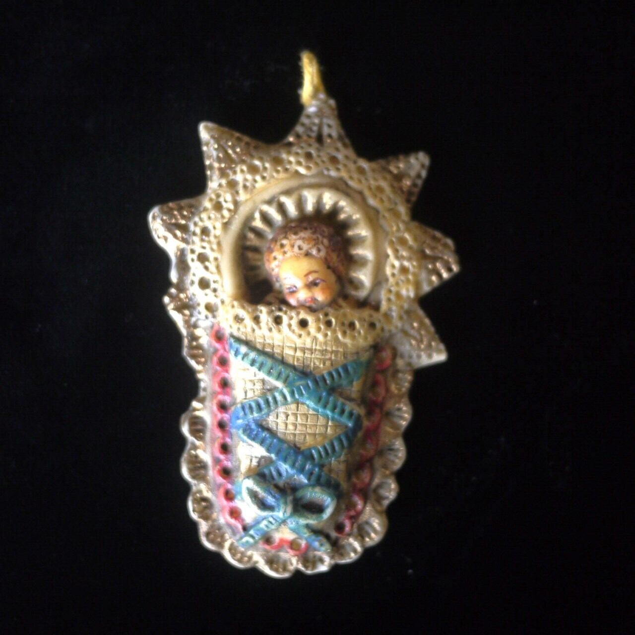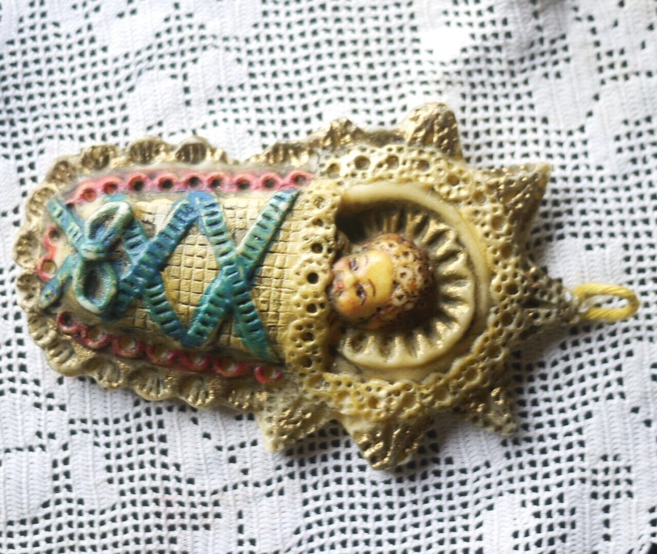 ヴィンテージのクリスマスワックス飾り、片面細工です。