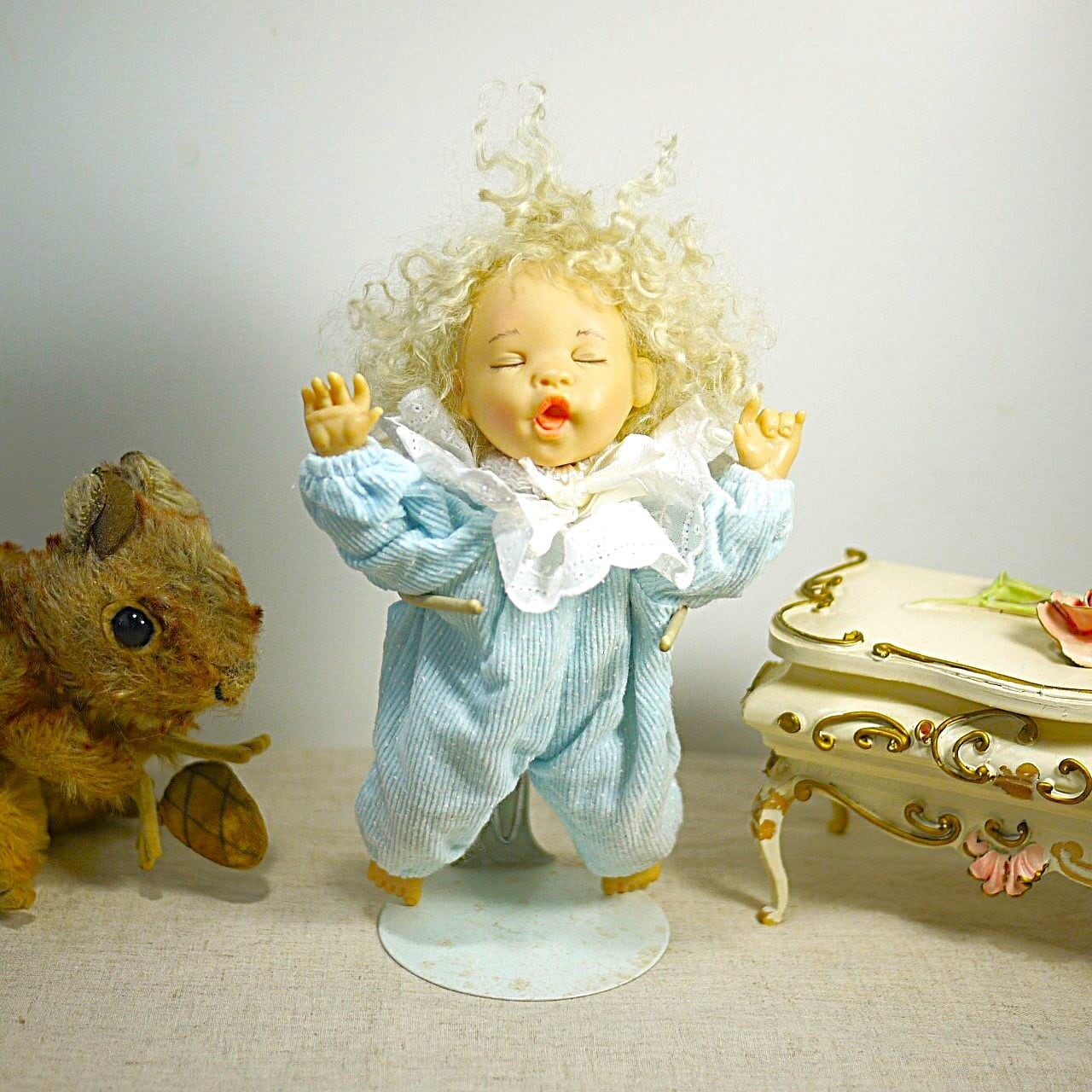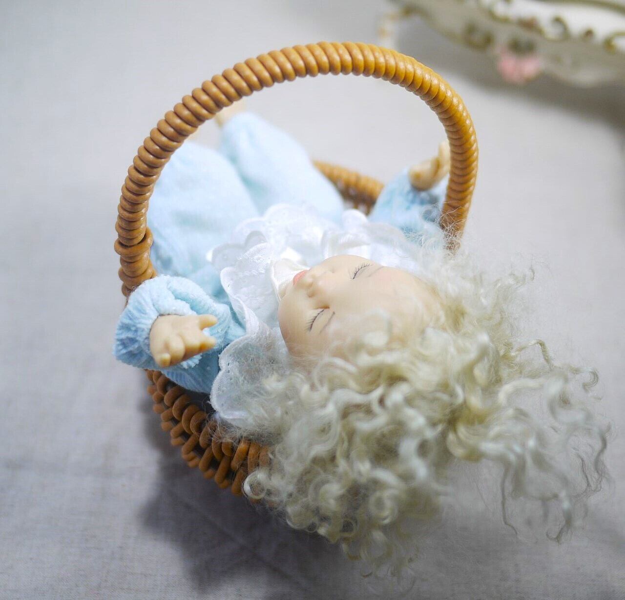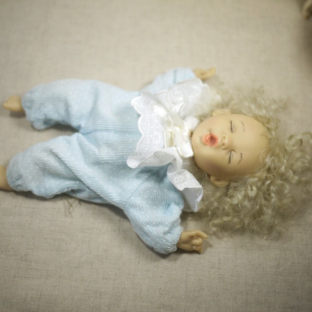 [眠る赤ちゃん人形 もじゃもじゃヘア ドイツ]
