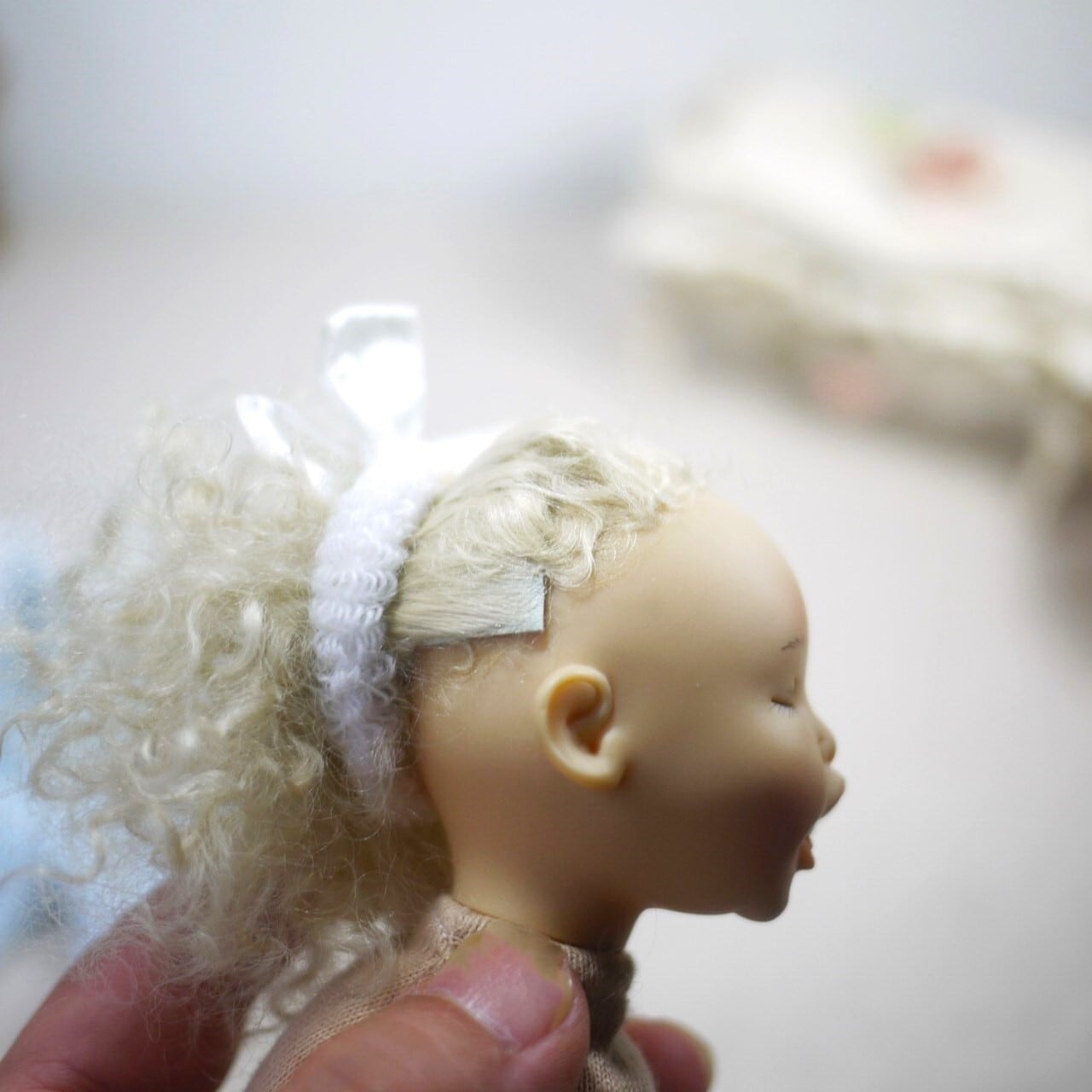 眠る赤ちゃん人形 もじゃもじゃヘア ドイツ