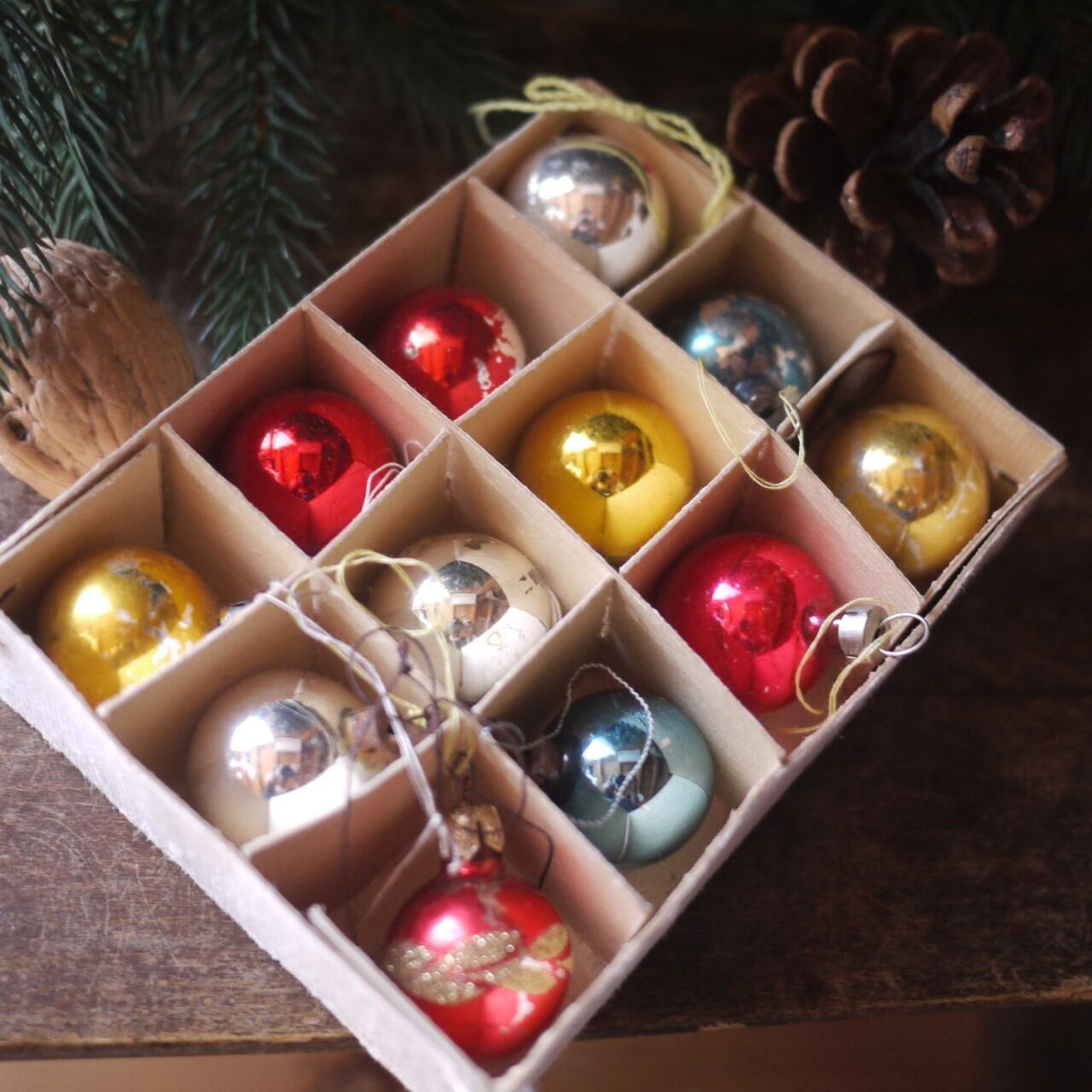 クリスマスツリーの小さな飾り玉12個セット。