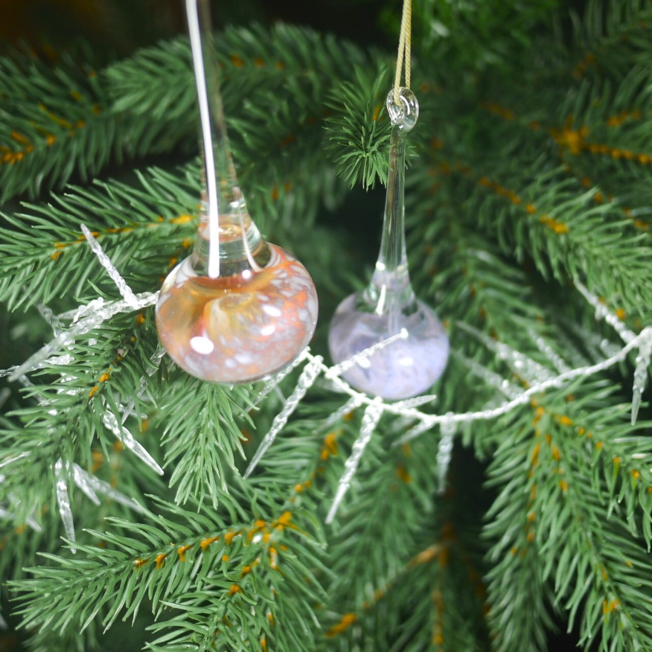 クリスマスのガラス飾り 大粒のティアードロップ 2個。