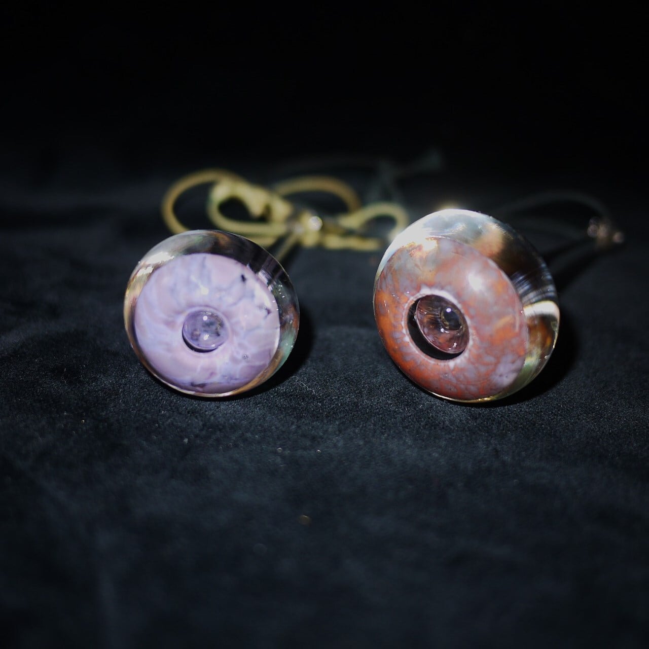 内側に赤や紫や白濁した斑点文様が溶け込んでいます。