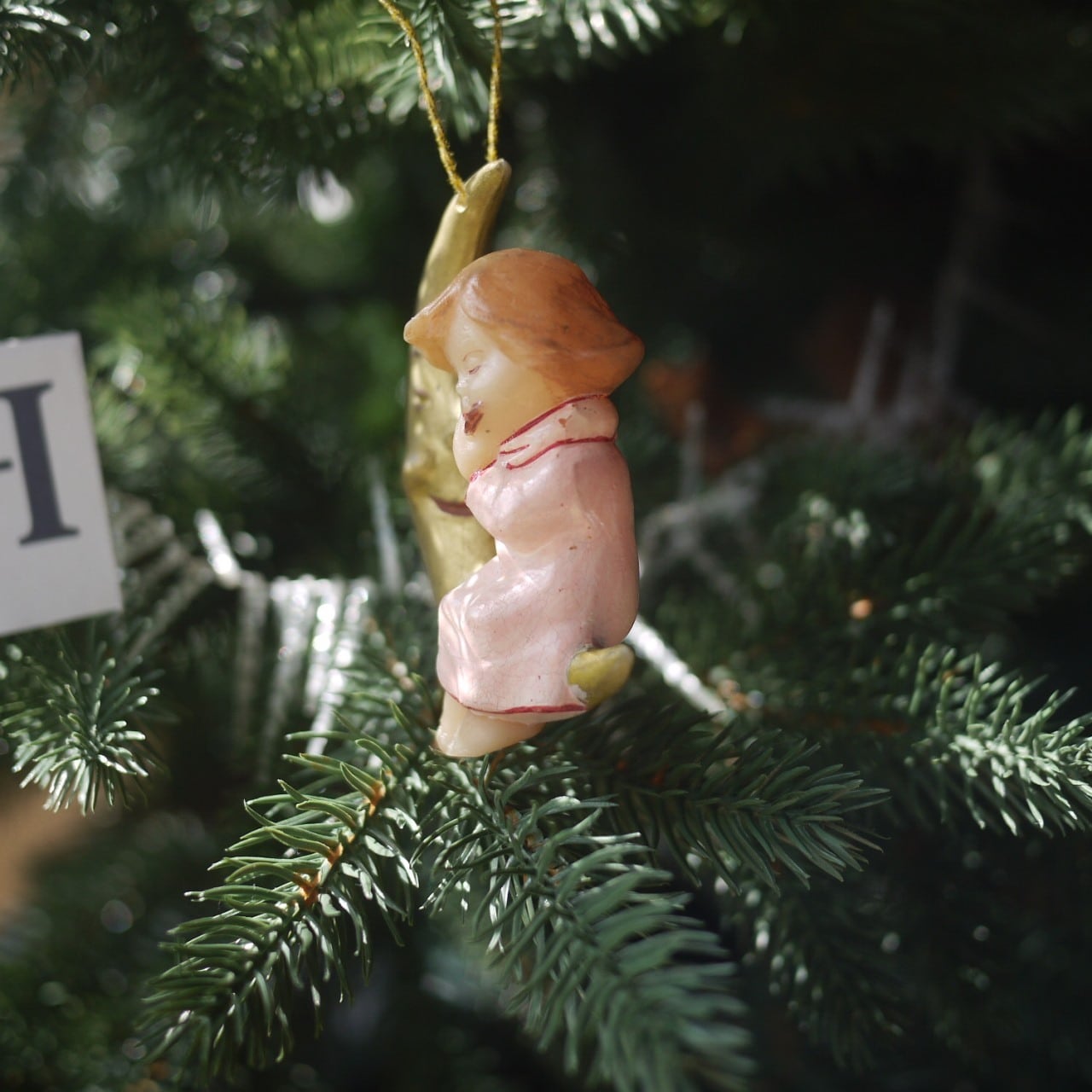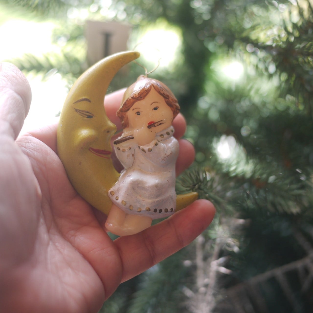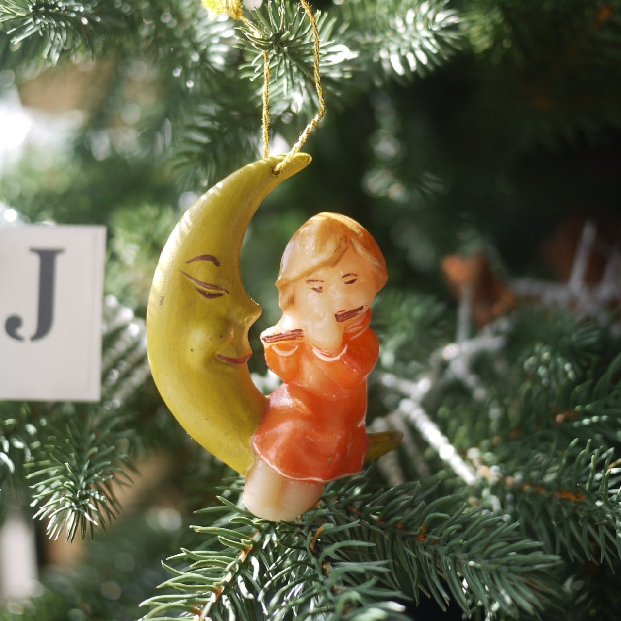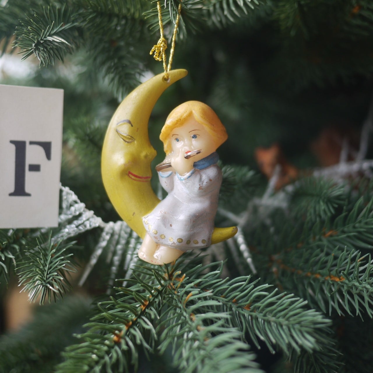[横笛を吹く女の子と月 プラスチックオーナメント ドイツ]