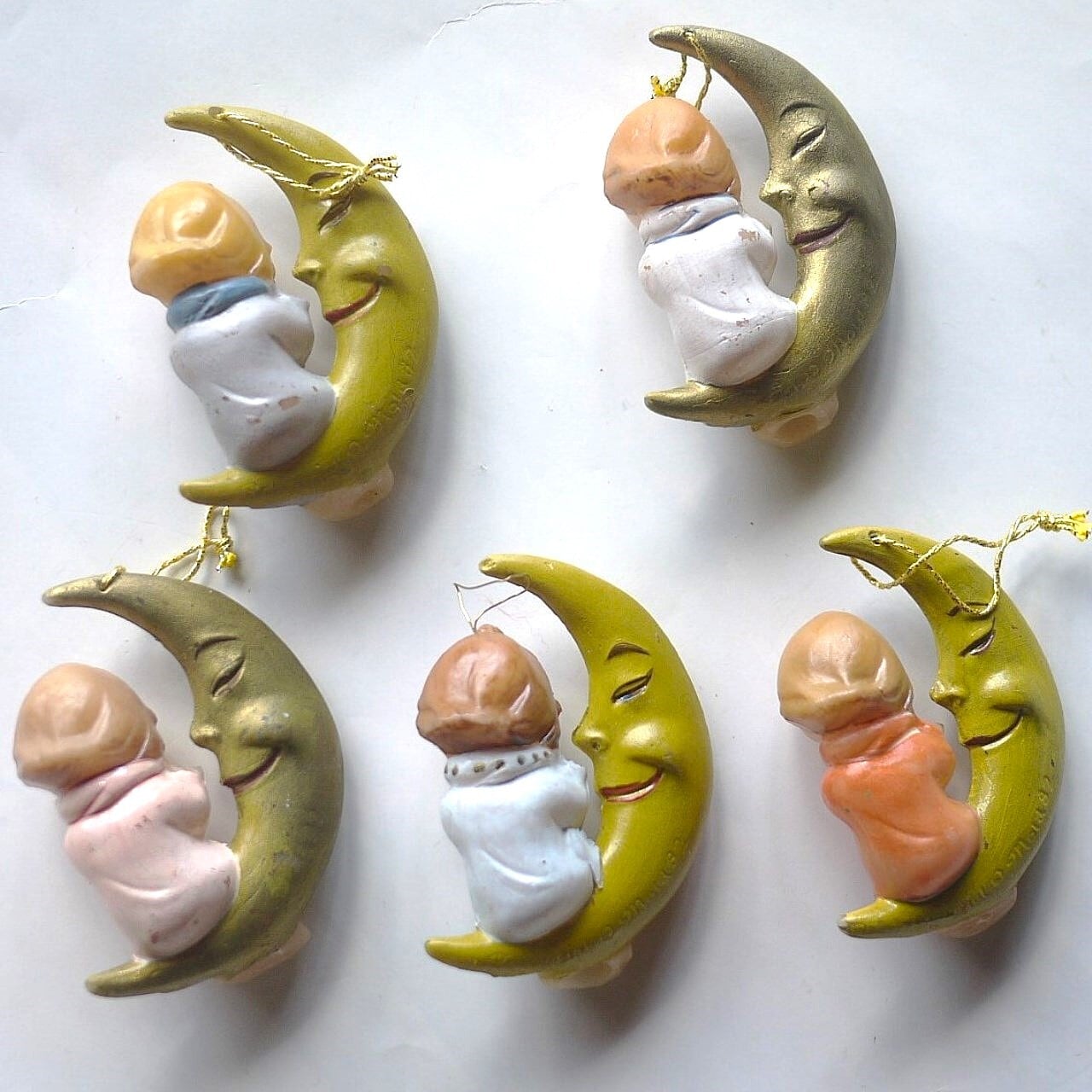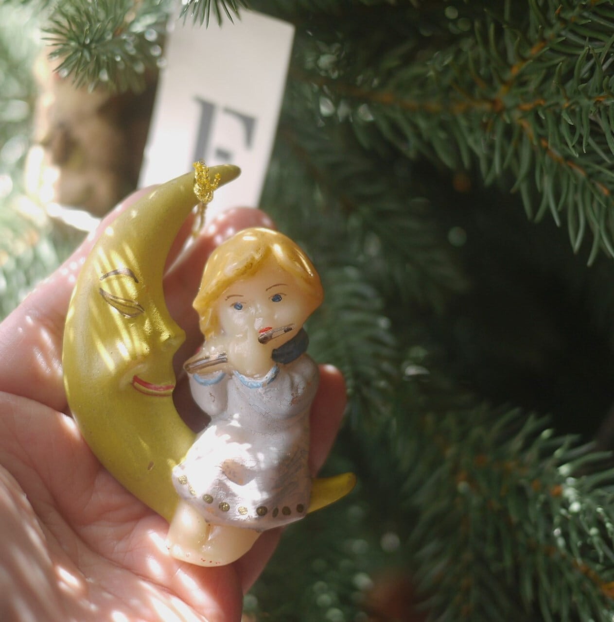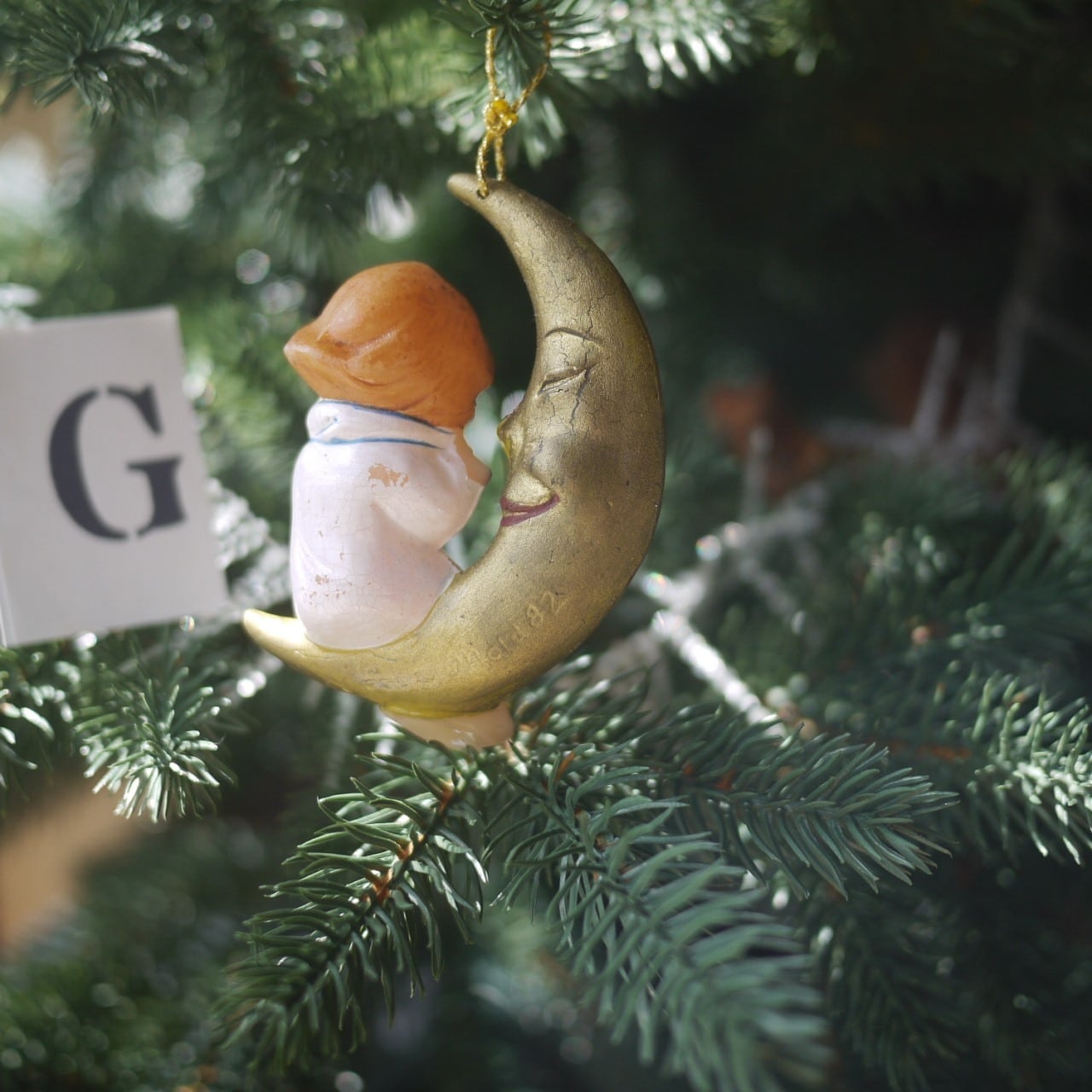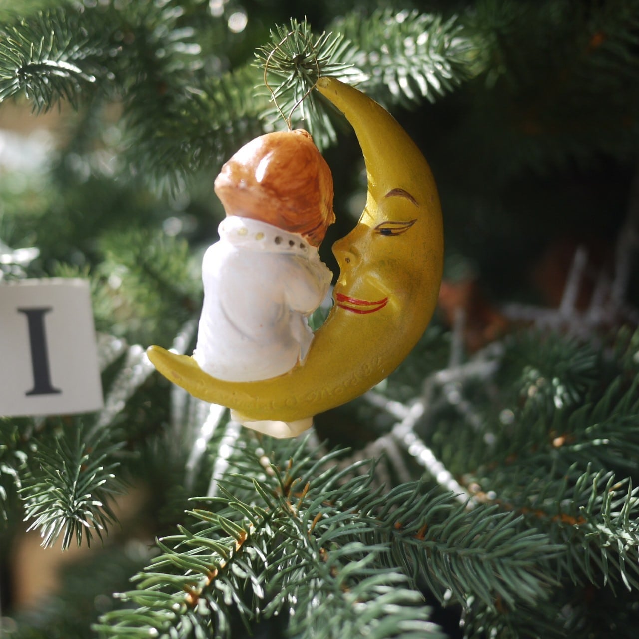 [横笛を吹く女の子と月 プラスチックオーナメント ドイツ]