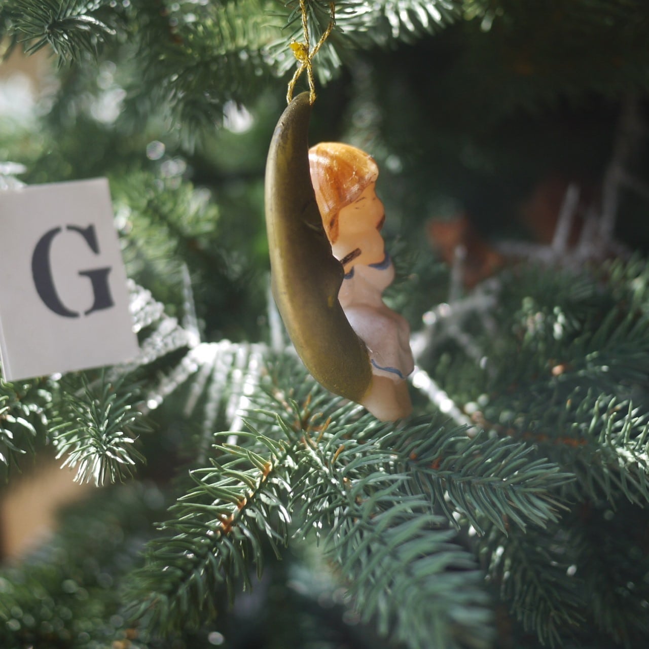 横笛を吹く女の子と月 プラスチックオーナメント ドイツ