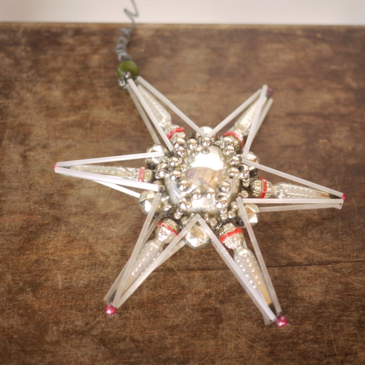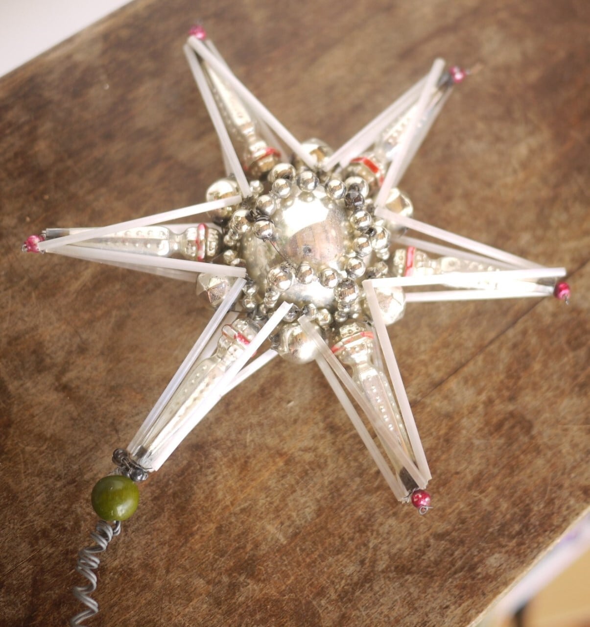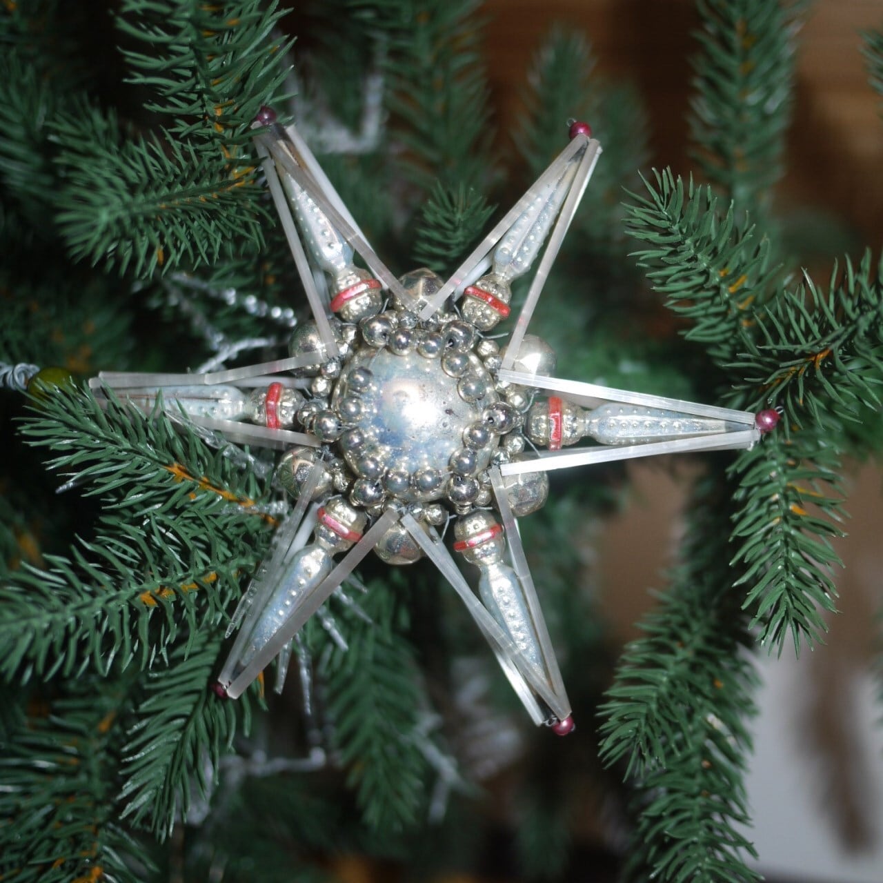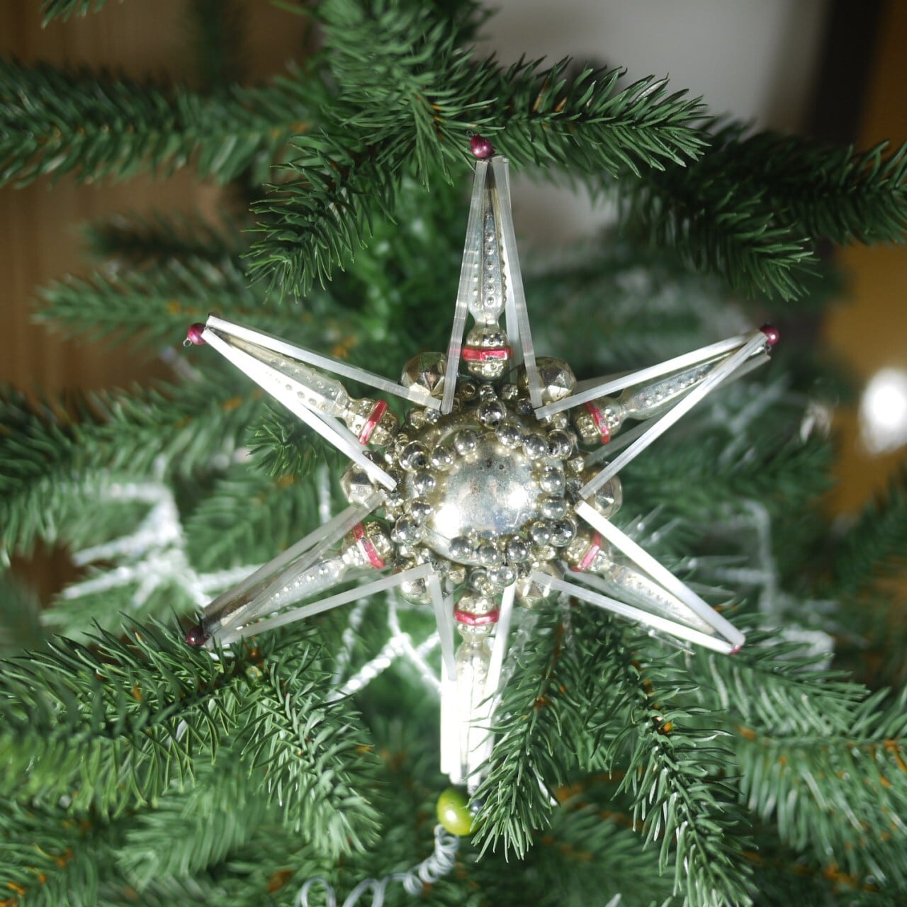 銀の星トッパー ガラスビーズ オーナメント チェコ
