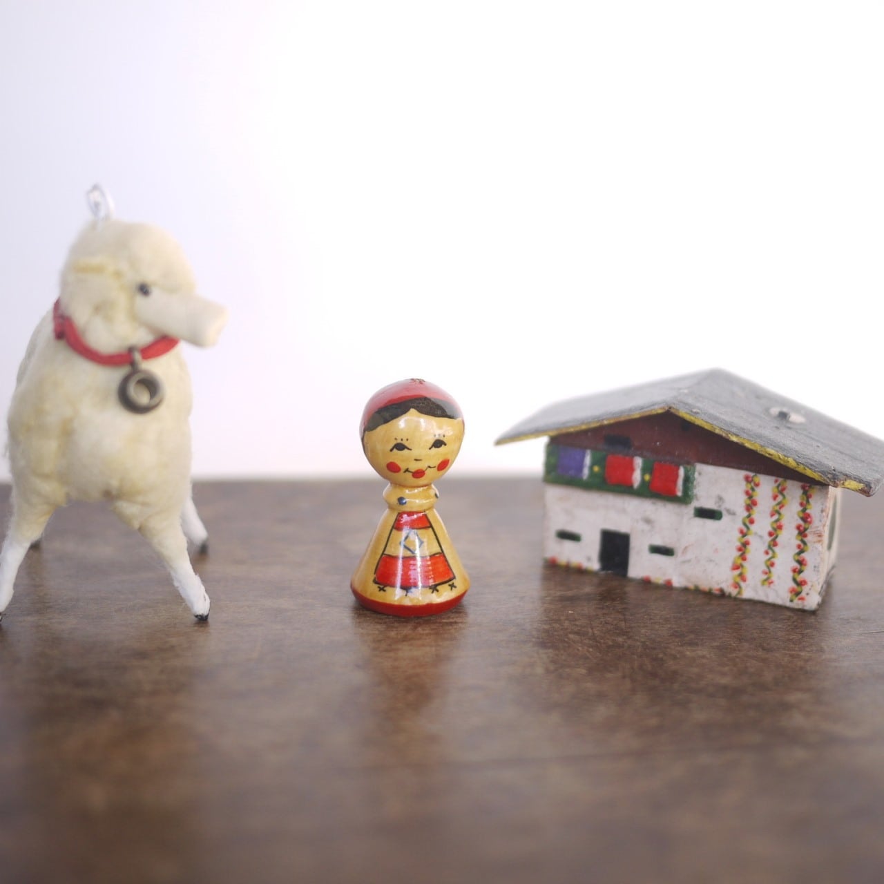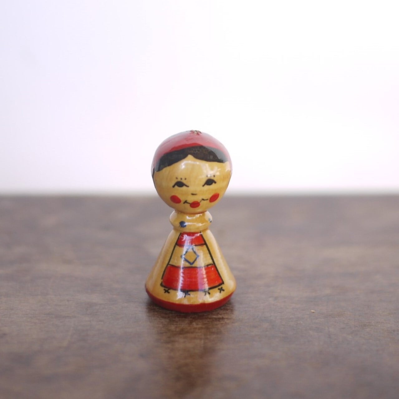 [赤いエプロンの女の子 木製人形 フィンランド]