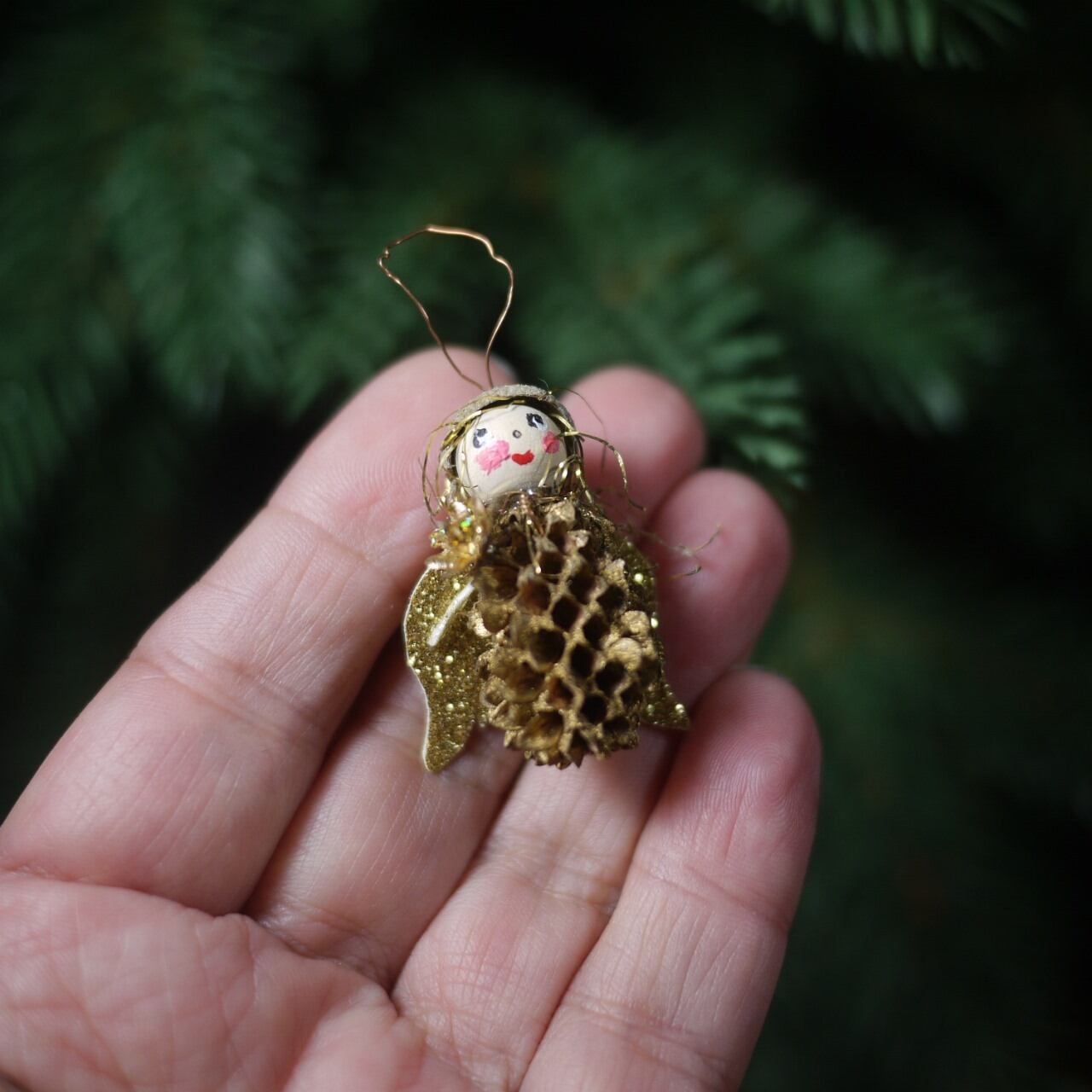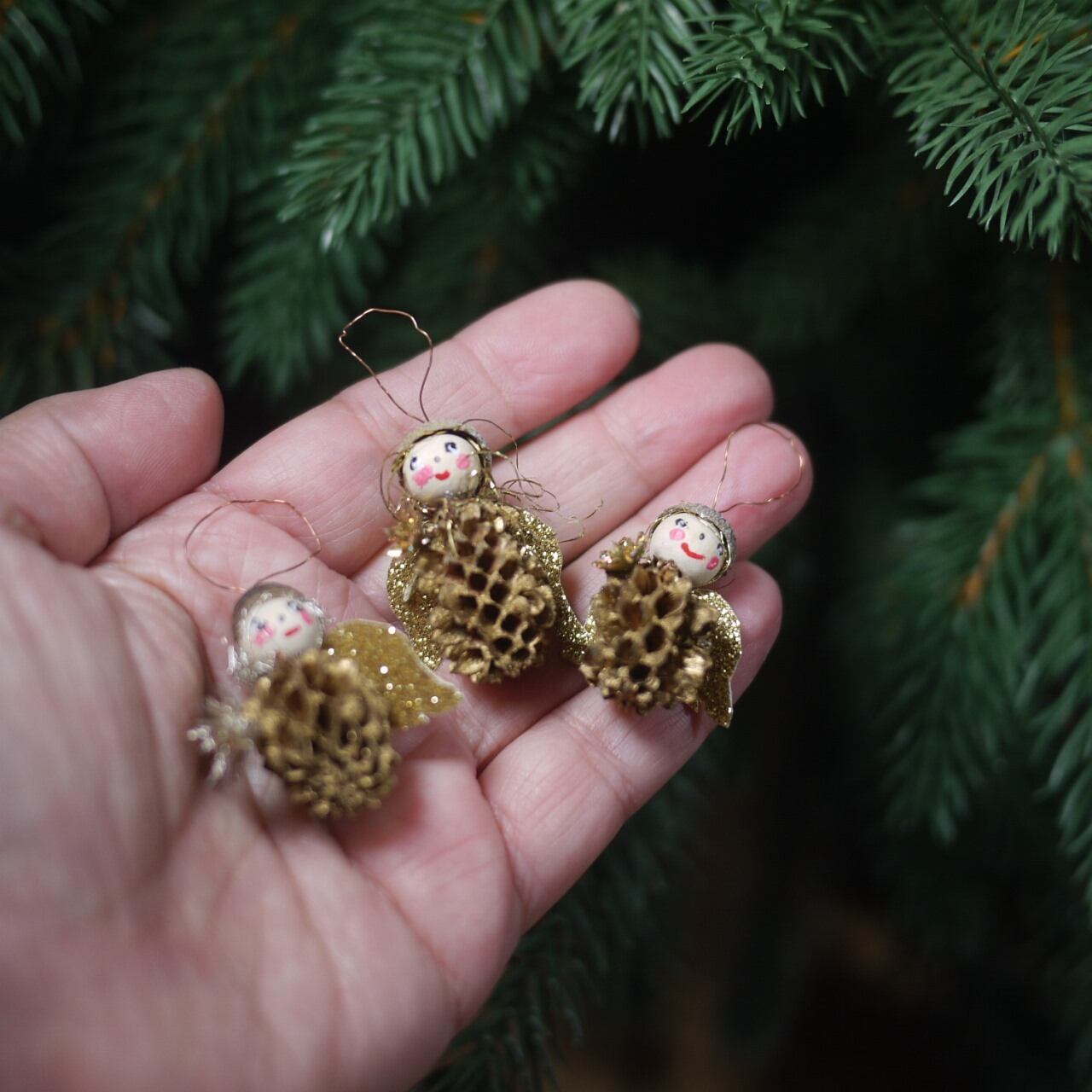 木の実オーナメント モクマオウの天使2人 Casuarina Zapfen