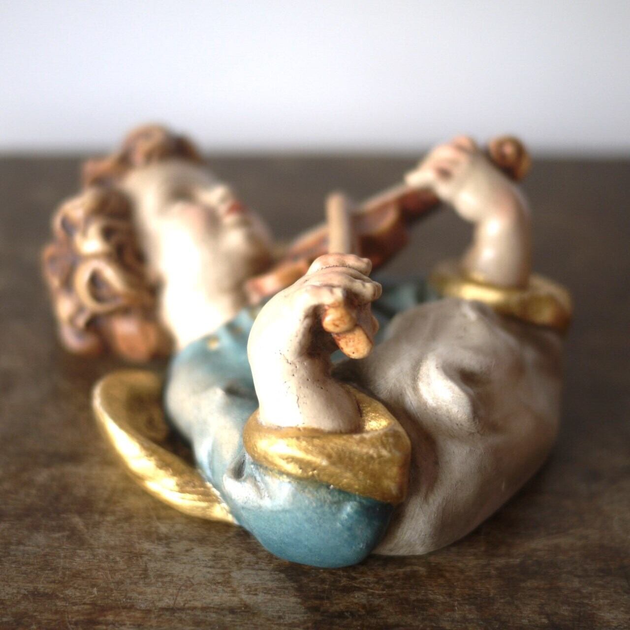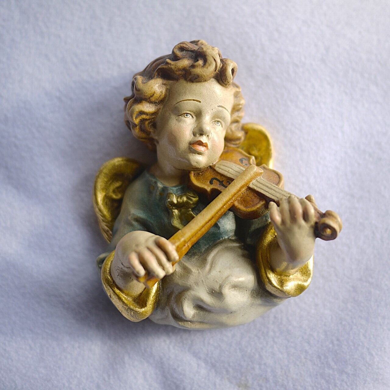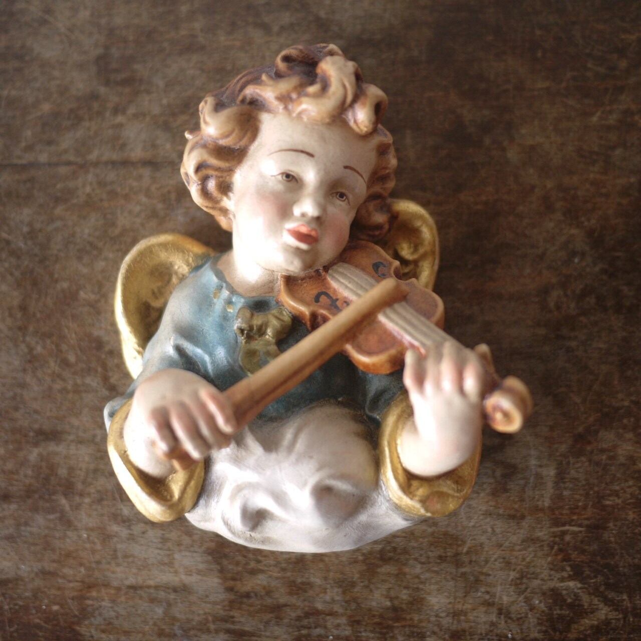 バイオリンを弾く天使 木彫り胸像 ドイツ